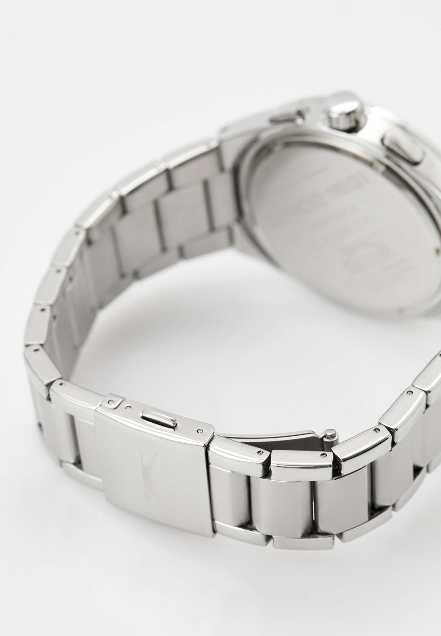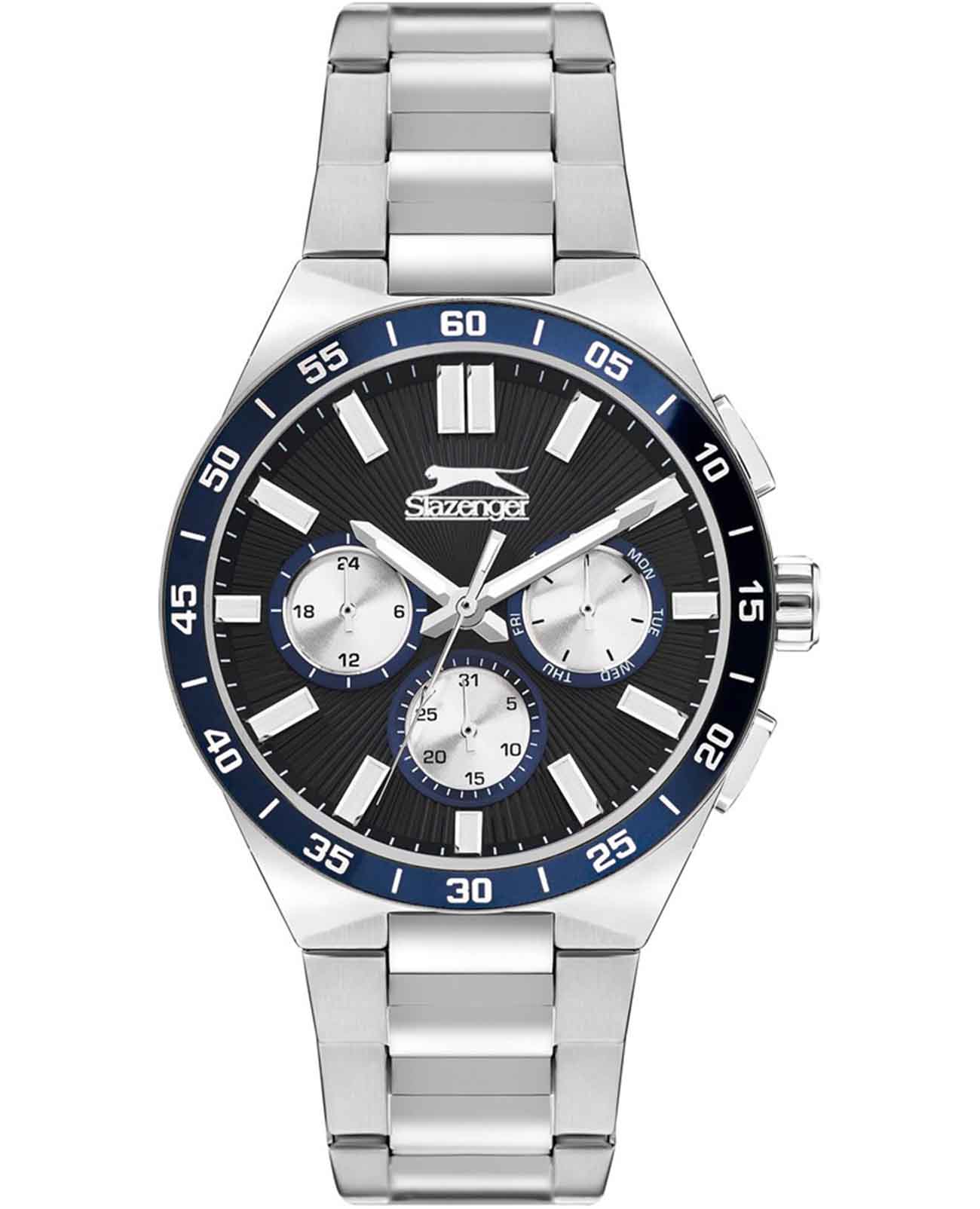 Часы Slazenger SL.09.2285.2.01 — это стильное решение для тех, кто ценит сочетание выразительного дизайна и функциональности. Модель оснащена надежным кварцевым механизмом, который заключен в прочный корпус диаметром 45 мм и толщиной 13 мм, выполненный из суперметалла — современного сплава на основе меди с пониженным содержанием цинка и никеля, обладающего высокой прочностью и устойчивостью к износу, а на безельБезельВнешний ободок, закрепляющий стекло. В спортивных часах так называется поворотное кольцо с делениями на циферблате, выполняет роль таймера – замеряет отрезки времени на шкале. Неподвижный безель – элемент декора. Однонаправленно вращающийся безель на дайверских часах позволяет фиксировать моменты погружения и выныривания на поверхность. нанесено синее IP-покрытиеIP-покрытиеМетод ионного напыления. Демонстрирует повышенную устойчивость к истиранию, окислению и химическим веществам. Под воздействием высокого давления и температуры около 1500°C молекулы металла надёжно соединяются с частицами корпуса часов. и секундная шкала. Минеральное стеклоМинеральное стеклоМинеральное стекло представляет собой искусственно выращенный минерал кварца. Такое стекло отличается особой устойчивостью к повреждениям и царапинам. Уступает по некоторым качествам сапфировому стеклу. защищает черный циферблат от царапин и повреждений. Часы оснащены дополнительными циферблатами для отображения 24-часового времени, даты и дня недели, что делает использование еще более удобным. Браслет также выполнен из суперметалла с раскладной застёжкойРаскладная застёжкаТакой тип застёжки используется только на браслетах из металла. Она никогда не раскрывается полностью, происходит разделение на 2 и более частей. Раскладывающая застёжка снизит вероятность потери часов к минимуму. и гармонично дополняет общий облик аксессуара. Циферблат оснащён люминесцентным покрытиемЛюминесцентное покрытиеПозволяет считывать показания времени в темноте. Производители наносят на стрелки, часовые индексы, безель или поверхность циферблата светонакопительный состав, дающий холодное свечение. стрелок и меток, что позволяет легко определять время даже в условиях плохой освещенности. Класс водозащиты 5 АТМ позволяет не бояться случайных брызг и дождя, а гарантия 12 месяцев подтверждает высокое качество изделия.
