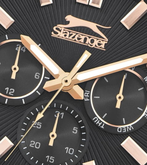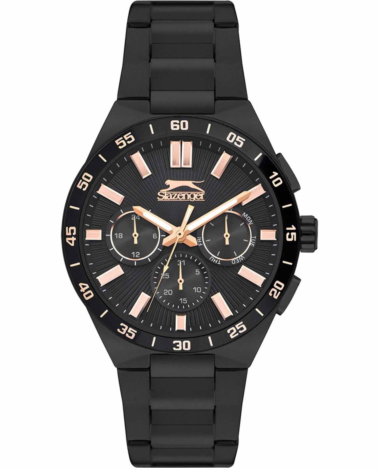 Часы Slazenger SL.09.2285.2.05 — это стильное решение для тех, кто ценит сочетание выразительного дизайна и функциональности. Модель оснащена надежным кварцевым механизмом, который заключен в прочный корпус диаметром 45 мм и толщиной 13 мм, выполненный из суперметалла с черным IP-покрытиемIP-покрытиеМетод ионного напыления. Демонстрирует повышенную устойчивость к истиранию, окислению и химическим веществам. Под воздействием высокого давления и температуры около 1500°C молекулы металла надёжно соединяются с частицами корпуса часов. — современного сплава на основе меди с пониженным содержанием цинка и никеля, обладающего высокой прочностью и устойчивостью к износу, а на безельБезельВнешний ободок, закрепляющий стекло. В спортивных часах так называется поворотное кольцо с делениями на циферблате, выполняет роль таймера – замеряет отрезки времени на шкале. Неподвижный безель – элемент декора. Однонаправленно вращающийся безель на дайверских часах позволяет фиксировать моменты погружения и выныривания на поверхность. нанесено черное IP-покрытиеIP-покрытиеМетод ионного напыления. Демонстрирует повышенную устойчивость к истиранию, окислению и химическим веществам. Под воздействием высокого давления и температуры около 1500°C молекулы металла надёжно соединяются с частицами корпуса часов. и секундная шкала. Минеральное стеклоМинеральное стеклоМинеральное стекло представляет собой искусственно выращенный минерал кварца. Такое стекло отличается особой устойчивостью к повреждениям и царапинам. Уступает по некоторым качествам сапфировому стеклу. защищает черный циферблат от царапин и повреждений. Часы оснащены дополнительными циферблатами для отображения 24-часового времени, даты и дня недели, что делает использование еще более удобным. Браслет также выполнен из суперметалла с черным IP-покрытиемIP-покрытиеМетод ионного напыления. Демонстрирует повышенную устойчивость к истиранию, окислению и химическим веществам. Под воздействием высокого давления и температуры около 1500°C молекулы металла надёжно соединяются с частицами корпуса часов. и с раскладной застёжкойРаскладная застёжкаТакой тип застёжки используется только на браслетах из металла. Она никогда не раскрывается полностью, происходит разделение на 2 и более частей. Раскладывающая застёжка снизит вероятность потери часов к минимуму. и гармонично дополняет общий облик аксессуара. Циферблат оснащён люминесцентным покрытиемЛюминесцентное покрытиеПозволяет считывать показания времени в темноте. Производители наносят на стрелки, часовые индексы, безель или поверхность циферблата светонакопительный состав, дающий холодное свечение. стрелок и меток, что позволяет легко определять время даже в условиях плохой освещенности. Класс водозащиты 5 АТМ позволяет не бояться случайных брызг и дождя, а гарантия 12 месяцев подтверждает высокое качество изделия.