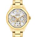 Часы Slazenger SL.09.2290.4.08 — это сочетание современного дизайна и функциональности, идеально подходящее для тех, кто ценит стиль и элегантность. Корпус и браслет выполнены из прочного суперметалла с золотистым IP-покрытиемIP-покрытиеМетод ионного напыления. Демонстрирует повышенную устойчивость к истиранию, окислению и химическим веществам. Под воздействием высокого давления и температуры около 1500°C молекулы металла надёжно соединяются с частицами корпуса часов., что придаёт модели солидный и эффектный вид. Белый циферблат с лаконичными отметками, кристаллами и фирменным логотипом защищён устойчивым к царапинам минеральным стекломМинеральное стеклоМинеральное стекло представляет собой искусственно выращенный минерал кварца. Такое стекло отличается особой устойчивостью к повреждениям и царапинам. Уступает по некоторым качествам сапфировому стеклу.. Дополнительные функции включают отображение даты и дня недели, а также 12- и 24-часовой формат времени на отдельных мини-циферблатах, что делает использование часов максимально удобным. Заводная головка оснащена защитой, а надёжная раскладная застёжкаРаскладная застёжкаТакой тип застёжки используется только на браслетах из металла. Она никогда не раскрывается полностью, происходит разделение на 2 и более частей. Раскладывающая застёжка снизит вероятность потери часов к минимуму. обеспечивает комфортную посадку на запястье. Особое внимание привлекает восьмигранный безельБезельВнешний ободок, закрепляющий стекло. В спортивных часах так называется поворотное кольцо с делениями на циферблате, выполняет роль таймера – замеряет отрезки времени на шкале. Неподвижный безель – элемент декора. Однонаправленно вращающийся безель на дайверских часах позволяет фиксировать моменты погружения и выныривания на поверхность.. Циферблат оснащён люминесцентным покрытиемЛюминесцентное покрытиеПозволяет считывать показания времени в темноте. Производители наносят на стрелки, часовые индексы, безель или поверхность циферблата светонакопительный состав, дающий холодное свечение. стрелок и меток, что позволяет легко определять время даже в условиях плохой освещенности. Водозащита 30WR позволяет не беспокоиться о случайных брызгах и дождевых каплях. Диаметр корпуса составляет 36 мм, толщина — 12 мм, вес — 97 г, благодаря чему часы выглядят внушительно и подчёркивают индивидуальный стиль владельца. Эта модель станет отличным акцентом в вашем образе и подчеркнёт вашу уверенность в любой ситуации.