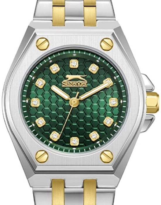 Женские часы Slazenger SL.09.2342.3.03 – это сочетание элегантности, современного стиля и надёжности. Изящный корпус из суперметалла подчёркивает утончённость модели, а благородное цветовое исполнение делает их идеальным аксессуаром для любой ситуации – будь то деловая встреча, романтический вечер или повседневные выходы. Циферблат украшен кристаллами. Циферблат надёжно защищён минеральным стекломМинеральное стеклоМинеральное стекло представляет собой искусственно выращенный минерал кварца. Такое стекло отличается особой устойчивостью к повреждениям и царапинам. Уступает по некоторым качествам сапфировому стеклу., которое устойчиво к механическим повреждениям и сохраняет кристальную прозрачность. Стрелки с люминесцентным покрытиемЛюминесцентное покрытиеПозволяет считывать показания времени в темноте. Производители наносят на стрелки, часовые индексы, безель или поверхность циферблата светонакопительный состав, дающий холодное свечение. мягко подсвечиваются в темноте, обеспечивая комфортное считывание времени в любое время суток. Эргономичный браслет из суперметалла с PVD-покрытиемPVDУльтратонкое покрытие наносится в технике вакуумного напыления, сочетает в себе нитрид титана особой прочности со слоем золота или оксида хрома. Несёт в себе декоративную или защитную функцию. удобно облегает запястье и фиксируется с помощью раскладной застёжкиРаскладная застёжкаТакой тип застёжки используется только на браслетах из металла. Она никогда не раскрывается полностью, происходит разделение на 2 и более частей. Раскладывающая застёжка снизит вероятность потери часов к минимуму., обеспечивая надёжность и комфорт в повседневном ношении. Утончённый стиль, внимание к деталям и практичность делают эту модель идеальным выбором для современных женщин, ценящих эстетику и функциональность.