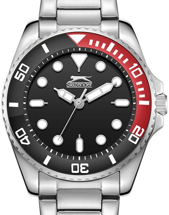 Slazenger SL.09.2352.1.06 — стильные мужские часы, сочетающие современный дизайн и функциональность. Корпус выполнен из суперметалла, обеспечивающей прочность и долговечность. Минеральное стеклоМинеральное стеклоМинеральное стекло представляет собой искусственно выращенный минерал кварца. Такое стекло отличается особой устойчивостью к повреждениям и царапинам. Уступает по некоторым качествам сапфировому стеклу. защищает циферблат от царапин и гарантирует превосходную читаемость.БезельБезельВнешний ободок, закрепляющий стекло. В спортивных часах так называется поворотное кольцо с делениями на циферблате, выполняет роль таймера – замеряет отрезки времени на шкале. Неподвижный безель – элемент декора. Однонаправленно вращающийся безель на дайверских часах позволяет фиксировать моменты погружения и выныривания на поверхность. с PVD-покрытиемPVDУльтратонкое покрытие наносится в технике вакуумного напыления, сочетает в себе нитрид титана особой прочности со слоем золота или оксида хрома. Несёт в себе декоративную или защитную функцию.. Серебристый циферблат с контрастными метками и стрелками подчёркивает элегантный стиль модели. Браслет из суперметалла обеспечивает комфортное ношение и надёжную фиксацию на запястье. Функциональность дополняется индикацией даты, повышая удобство использования. Водонепроницаемость 50 метров делает модель устойчивой к случайным брызгам, идеально подходя для повседневного использования.