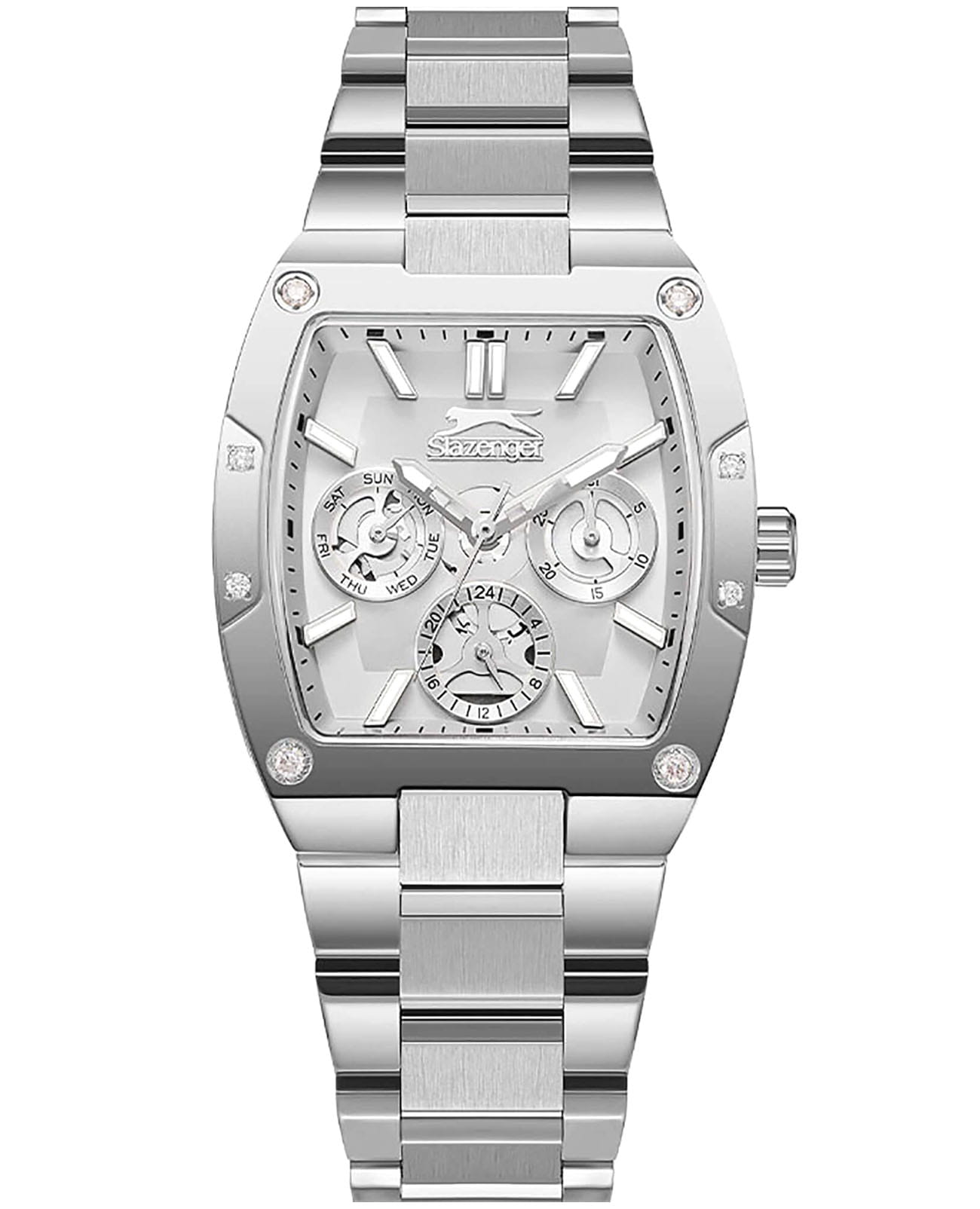 Женские кварцевые часы Slazenger SL.09.2357.4.012 – это сочетание элегантности, современного стиля и надёжности. Изящный корпус из суперметалла серебристого цвета, размером 32 мм х 33 мм и толщиной 10 мм, подчёркивает утончённость модели и делает их идеальным аксессуаром для любой ситуации – будь то деловая встреча, романтический вечер или повседневные выходы. Циферблат надёжно защищён минеральным стекломМинеральное стеклоМинеральное стекло представляет собой искусственно выращенный минерал кварца. Такое стекло отличается особой устойчивостью к повреждениям и царапинам. Уступает по некоторым качествам сапфировому стеклу., которое устойчиво к механическим повреждениям и сохраняет кристальную прозрачность. Браслет из суперметалла удобно облегает запястье и фиксируется с помощью раскладной застёжкиРаскладная застёжкаТакой тип застёжки используется только на браслетах из металла. Она никогда не раскрывается полностью, происходит разделение на 2 и более частей. Раскладывающая застёжка снизит вероятность потери часов к минимуму., обеспечивая надёжность и комфорт в повседневном ношении. Утончённый стиль, внимание к деталям и практичность делают эту модель идеальным выбором для современных женщин, ценящих эстетику и функциональность. Стрелки и метки покрыты люминесцентным покрытиемЛюминесцентное покрытиеПозволяет считывать показания времени в темноте. Производители наносят на стрелки, часовые индексы, безель или поверхность циферблата светонакопительный состав, дающий холодное свечение., обеспечивающим отличную читаемость в темноте. Вынесенный циферблат с 24-х часовым указателем времени. Водозащита до 30 метров позволит защитить корпус от случайных брызг или капель дождя.