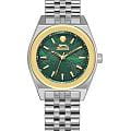 Женские кварцевые часы Slazenger — это элегантный аксессуар, сочетающий стиль и надёжность. Корпус диаметром 32 мм и толщиной 9 мм выполнен из суперметалла с IP-покрытиемIP-покрытиеМетод ионного напыления. Демонстрирует повышенную устойчивость к истиранию, окислению и химическим веществам. Под воздействием высокого давления и температуры около 1500°C молекулы металла надёжно соединяются с частицами корпуса часов.. Циферблат зелёного цвета защищён минеральным стекломМинеральное стеклоМинеральное стекло представляет собой искусственно выращенный минерал кварца. Такое стекло отличается особой устойчивостью к повреждениям и царапинам. Уступает по некоторым качествам сапфировому стеклу.. Механизм — кварцевый калибр VJ21C1. Часы оснащены браслетом из суперметалла с раскладной застёжкойРаскладная застёжкаТакой тип застёжки используется только на браслетах из металла. Она никогда не раскрывается полностью, происходит разделение на 2 и более частей. Раскладывающая застёжка снизит вероятность потери часов к минимуму.. Водонепроницаемость 30 м позволяет использовать часы в повседневных условиях. Гарантия — 12 месяцев. Идеальный выбор для тех, кто ценит классический дизайн и качество.