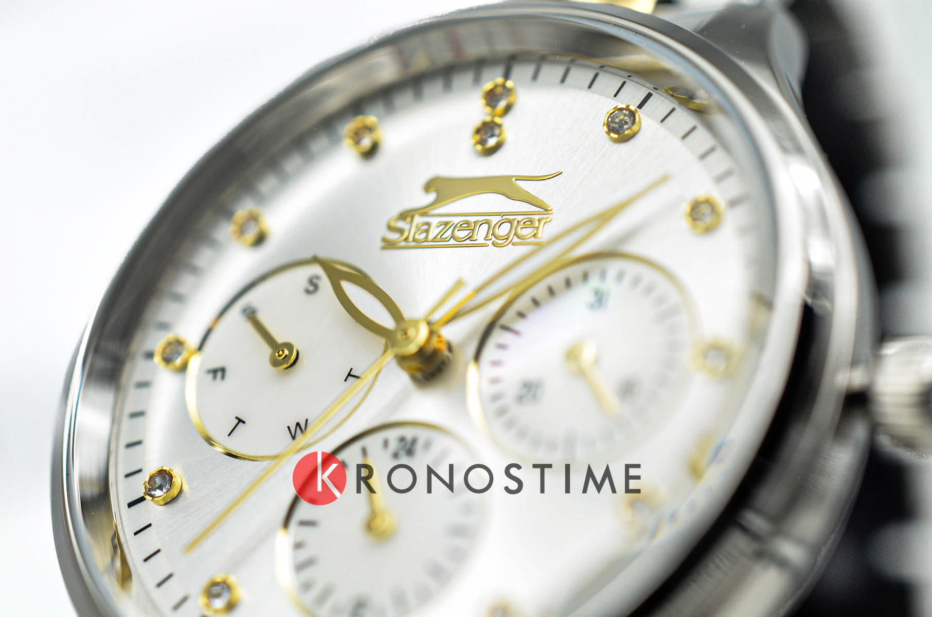 Женские кварцевые часы Slazenger — это элегантный и функциональный аксессуар. Корпус диаметром 34 мм и толщиной 11 мм выполнен из суперметалла. Циферблат серебристого цвета оформлен индексами и стрелками, украшен фианитами. Циферблат защищён минеральным стекломМинеральное стеклоМинеральное стекло представляет собой искусственно выращенный минерал кварца. Такое стекло отличается особой устойчивостью к повреждениям и царапинам. Уступает по некоторым качествам сапфировому стеклу.. Механизм — кварцевый. Часы оснащены индикацией дня недели, даты и 12/24-часового формата времени. Часы оснащены браслетом из суперметалла с IP-покрытиемIP-покрытиеМетод ионного напыления. Демонстрирует повышенную устойчивость к истиранию, окислению и химическим веществам. Под воздействием высокого давления и температуры около 1500°C молекулы металла надёжно соединяются с частицами корпуса часов. и раскладной застёжкойРаскладная застёжкаТакой тип застёжки используется только на браслетах из металла. Она никогда не раскрывается полностью, происходит разделение на 2 и более частей. Раскладывающая застёжка снизит вероятность потери часов к минимуму.. Водонепроницаемость 50 м позволяет использовать часы в повседневных условиях. Гарантия — 12 месяцев. Идеальный выбор для тех, кто ценит стиль, функциональность и качество.