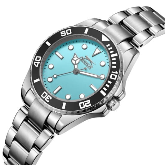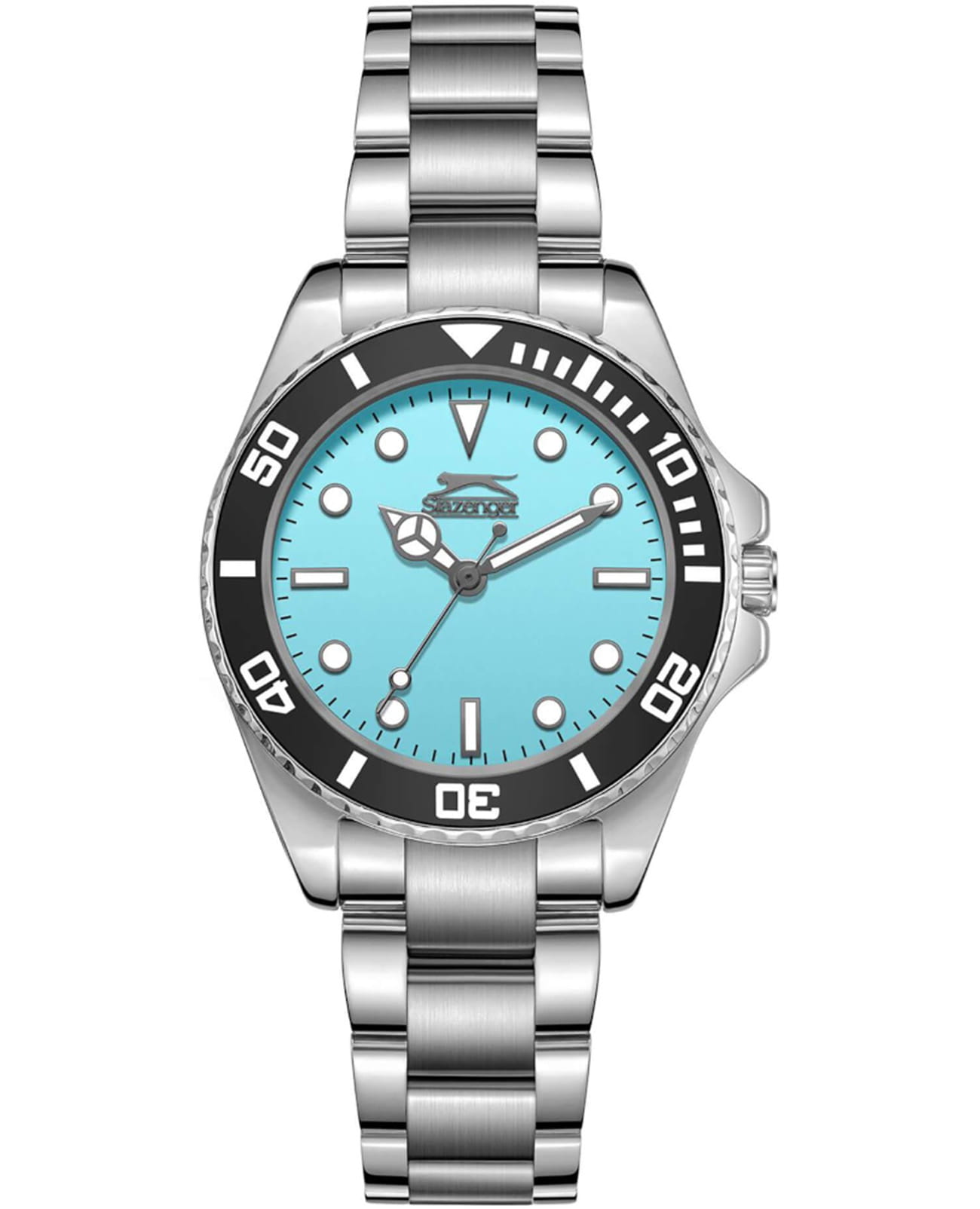 Женские кварцевые часы Slazenger — это элегантный аксессуар. Корпус диаметром 33 мм и толщиной 9 мм выполнен из суперметалла. Циферблат голубого цвета оформлен индексами и стрелками. Поворотный безельБезельВнешний ободок, закрепляющий стекло. В спортивных часах так называется поворотное кольцо с делениями на циферблате, выполняет роль таймера – замеряет отрезки времени на шкале. Неподвижный безель – элемент декора. Однонаправленно вращающийся безель на дайверских часах позволяет фиксировать моменты погружения и выныривания на поверхность. из суперметалла с IP-покрытиемIP-покрытиеМетод ионного напыления. Демонстрирует повышенную устойчивость к истиранию, окислению и химическим веществам. Под воздействием высокого давления и температуры около 1500°C молекулы металла надёжно соединяются с частицами корпуса часов.. Циферблат защищён минеральным стекломМинеральное стеклоМинеральное стекло представляет собой искусственно выращенный минерал кварца. Такое стекло отличается особой устойчивостью к повреждениям и царапинам. Уступает по некоторым качествам сапфировому стеклу.. Механизм — кварцевый. Стрелки и метки с люминесцентным покрытиемЛюминесцентное покрытиеПозволяет считывать показания времени в темноте. Производители наносят на стрелки, часовые индексы, безель или поверхность циферблата светонакопительный состав, дающий холодное свечение., обеспечивающим хорошую читаемость в темноте. Часы оснащены браслетом из суперметалла с раскладной застёжкойРаскладная застёжкаТакой тип застёжки используется только на браслетах из металла. Она никогда не раскрывается полностью, происходит разделение на 2 и более частей. Раскладывающая застёжка снизит вероятность потери часов к минимуму.. Водонепроницаемость 50 м позволяет использовать часы в повседневных условиях. Гарантия — 12 месяцев. Идеальный выбор для тех, кто ценит стиль и качество.