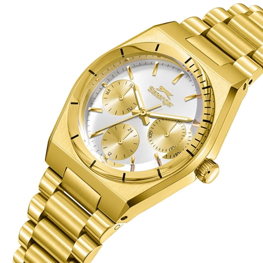 Женские кварцевые часы Slazenger — это элегантный и функциональный аксессуар. Корпус диаметром 32 мм и толщиной 10,5 мм выполнен из суперметалла с IP-покрытиемIP-покрытиеМетод ионного напыления. Демонстрирует повышенную устойчивость к истиранию, окислению и химическим веществам. Под воздействием высокого давления и температуры около 1500°C молекулы металла надёжно соединяются с частицами корпуса часов.. Циферблат серебристого цвета оформлен индексами и стрелками. Циферблат защищён минеральным стекломМинеральное стеклоМинеральное стекло представляет собой искусственно выращенный минерал кварца. Такое стекло отличается особой устойчивостью к повреждениям и царапинам. Уступает по некоторым качествам сапфировому стеклу.. Механизм — кварцевый. Часы оснащены индикацией дня недели, даты и 12/24-часового формата времени. Стрелки с люминесцентным покрытиемЛюминесцентное покрытиеПозволяет считывать показания времени в темноте. Производители наносят на стрелки, часовые индексы, безель или поверхность циферблата светонакопительный состав, дающий холодное свечение., обеспечивающим хорошую читаемость в темноте. Часы оснащены браслетом из суперметалла с IP-покрытиемIP-покрытиеМетод ионного напыления. Демонстрирует повышенную устойчивость к истиранию, окислению и химическим веществам. Под воздействием высокого давления и температуры около 1500°C молекулы металла надёжно соединяются с частицами корпуса часов. и раскладной застёжкойРаскладная застёжкаТакой тип застёжки используется только на браслетах из металла. Она никогда не раскрывается полностью, происходит разделение на 2 и более частей. Раскладывающая застёжка снизит вероятность потери часов к минимуму.. Водонепроницаемость 50 м позволяет использовать часы в повседневных условиях. Гарантия — 12 месяцев. Идеальный выбор для тех, кто ценит стиль, функциональность и качество.