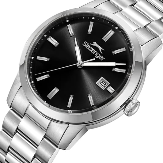 Мужские кварцевые часы Slazenger — это выразительный и функциональный аксессуар. Корпус диаметром 42 мм и толщиной 12 мм выполнен из нержавеющей стали 316L. Циферблат чёрного цвета оформлен индексами и стрелками. Циферблат защищён минеральным стекломМинеральное стеклоМинеральное стекло представляет собой искусственно выращенный минерал кварца. Такое стекло отличается особой устойчивостью к повреждениям и царапинам. Уступает по некоторым качествам сапфировому стеклу.. Механизм — кварцевый. Окошко даты расположено в положении 3 часов. Стрелки и метки с люминесцентным покрытиемЛюминесцентное покрытиеПозволяет считывать показания времени в темноте. Производители наносят на стрелки, часовые индексы, безель или поверхность циферблата светонакопительный состав, дающий холодное свечение., обеспечивающим хорошую читаемость в темноте. Часы оснащены стальным браслетом на застёжке «бабочка» с кнопкамиЗастёжка "бабочка"Такой вид застёжки дополняется предохранителями, помогающими избежать случайного раскрытия браслета. Обладают изящным исполнением. . Водонепроницаемость 100 м позволяет использовать часы для плавания и повседневного ношения. Гарантия — 12 месяцев. Идеальный выбор для тех, кто ценит стиль, функциональность и качество.