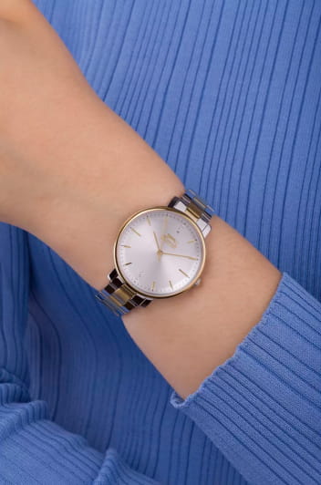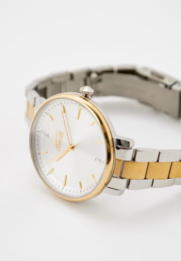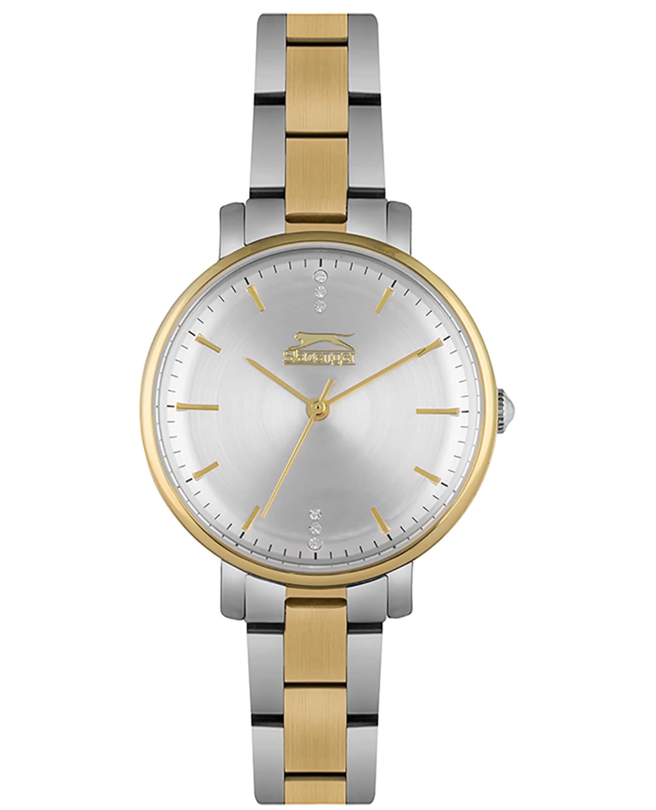 Женские кварцевые часы Slazenger — элегантный аксессуар с гармоничным дизайном и продуманной конструкцией. Корпус диаметром 35 мм и толщиной 8,5 мм выполнен из суперметалла. БезельБезельВнешний ободок, закрепляющий стекло. В спортивных часах так называется поворотное кольцо с делениями на циферблате, выполняет роль таймера – замеряет отрезки времени на шкале. Неподвижный безель – элемент декора. Однонаправленно вращающийся безель на дайверских часах позволяет фиксировать моменты погружения и выныривания на поверхность. с IP-покрытиемIP-покрытиеМетод ионного напыления. Демонстрирует повышенную устойчивость к истиранию, окислению и химическим веществам. Под воздействием высокого давления и температуры около 1500°C молекулы металла надёжно соединяются с частицами корпуса часов.. Циферблат серебристого цвета оформлен индексами и стрелками. Циферблат защищён минеральным стекломМинеральное стеклоМинеральное стекло представляет собой искусственно выращенный минерал кварца. Такое стекло отличается особой устойчивостью к повреждениям и царапинам. Уступает по некоторым качествам сапфировому стеклу.. Механизм — кварцевый калибр Miyota 2035. Браслет из суперметалла с IP-покрытиемIP-покрытиеМетод ионного напыления. Демонстрирует повышенную устойчивость к истиранию, окислению и химическим веществам. Под воздействием высокого давления и температуры около 1500°C молекулы металла надёжно соединяются с частицами корпуса часов.., обеспечивает цельный и утончённый образ. Часы оснащены раскладной застёжкойРаскладная застёжкаТакой тип застёжки используется только на браслетах из металла. Она никогда не раскрывается полностью, происходит разделение на 2 и более частей. Раскладывающая застёжка снизит вероятность потери часов к минимуму.. Водонепроницаемость 30 м позволяет использовать часы в повседневных условиях. Стильное решение для тех, кто ценит лаконичность и качество.
