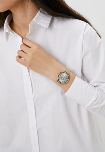 Женские кварцевые часы Slazenger — это элегантный аксессуар с браслетом миланского плетения. Корпус диаметром 38 мм и толщиной 9 мм выполнен из суперметалла с IP-покрытиемIP-покрытиеМетод ионного напыления. Демонстрирует повышенную устойчивость к истиранию, окислению и химическим веществам. Под воздействием высокого давления и температуры около 1500°C молекулы металла надёжно соединяются с частицами корпуса часов.. Циферблат серебристого цвета оформлен индексами и стрелками. Циферблат защищён минеральным стекломМинеральное стеклоМинеральное стекло представляет собой искусственно выращенный минерал кварца. Такое стекло отличается особой устойчивостью к повреждениям и царапинам. Уступает по некоторым качествам сапфировому стеклу.. Механизм — кварцевый калибр Miyota 2035. Часы оснащены браслетом из суперметалла миланского плетения с раскладной застёжкойРаскладная застёжкаТакой тип застёжки используется только на браслетах из металла. Она никогда не раскрывается полностью, происходит разделение на 2 и более частей. Раскладывающая застёжка снизит вероятность потери часов к минимуму.. Водонепроницаемость 30 м позволяет использовать часы в повседневных условиях. Идеальный выбор для тех, кто ценит стиль и качество.