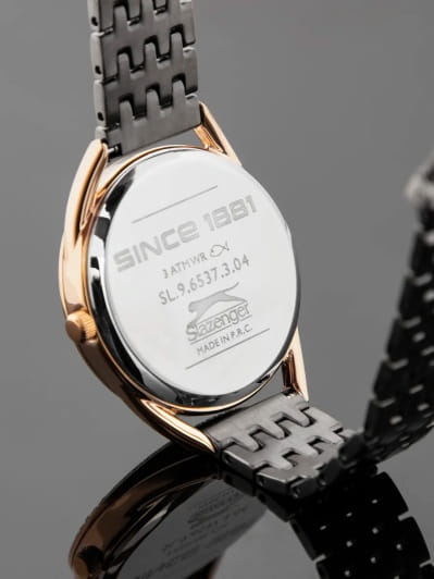Женские кварцевые часы Slazenger SL.09.6537.3.04 – это сочетание элегантности, современного стиля и надёжности. Изящный корпус из суперметалла с IP-покрытиемIP-покрытиеМетод ионного напыления. Демонстрирует повышенную устойчивость к истиранию, окислению и химическим веществам. Под воздействием высокого давления и температуры около 1500°C молекулы металла надёжно соединяются с частицами корпуса часов. цвета розового золота, диаметром 35 мм и толщиной 9 мм, подчёркивает утончённость модели и делает их идеальным аксессуаром для любой ситуации – будь то деловая встреча, романтический вечер или повседневные выходы. Циферблат надёжно защищён минеральным стекломМинеральное стеклоМинеральное стекло представляет собой искусственно выращенный минерал кварца. Такое стекло отличается особой устойчивостью к повреждениям и царапинам. Уступает по некоторым качествам сапфировому стеклу., которое устойчиво к механическим повреждениям и сохраняет кристальную прозрачность. БезельБезельВнешний ободок, закрепляющий стекло. В спортивных часах так называется поворотное кольцо с делениями на циферблате, выполняет роль таймера – замеряет отрезки времени на шкале. Неподвижный безель – элемент декора. Однонаправленно вращающийся безель на дайверских часах позволяет фиксировать моменты погружения и выныривания на поверхность. украшен фианитами. Браслет из суперметалла с IP-покрытиемIP-покрытиеМетод ионного напыления. Демонстрирует повышенную устойчивость к истиранию, окислению и химическим веществам. Под воздействием высокого давления и температуры около 1500°C молекулы металла надёжно соединяются с частицами корпуса часов. удобно облегает запястье и фиксируется с помощью раскладной застёжкиРаскладная застёжкаТакой тип застёжки используется только на браслетах из металла. Она никогда не раскрывается полностью, происходит разделение на 2 и более частей. Раскладывающая застёжка снизит вероятность потери часов к минимуму., обеспечивая надёжность и комфорт в повседневном ношении. Утончённый стиль, внимание к деталям и практичность делают эту модель идеальным выбором для современных женщин, ценящих эстетику и функциональность. Водозащита до 30 метров позволит защитить корпус от случайных брызг или капель дождя.