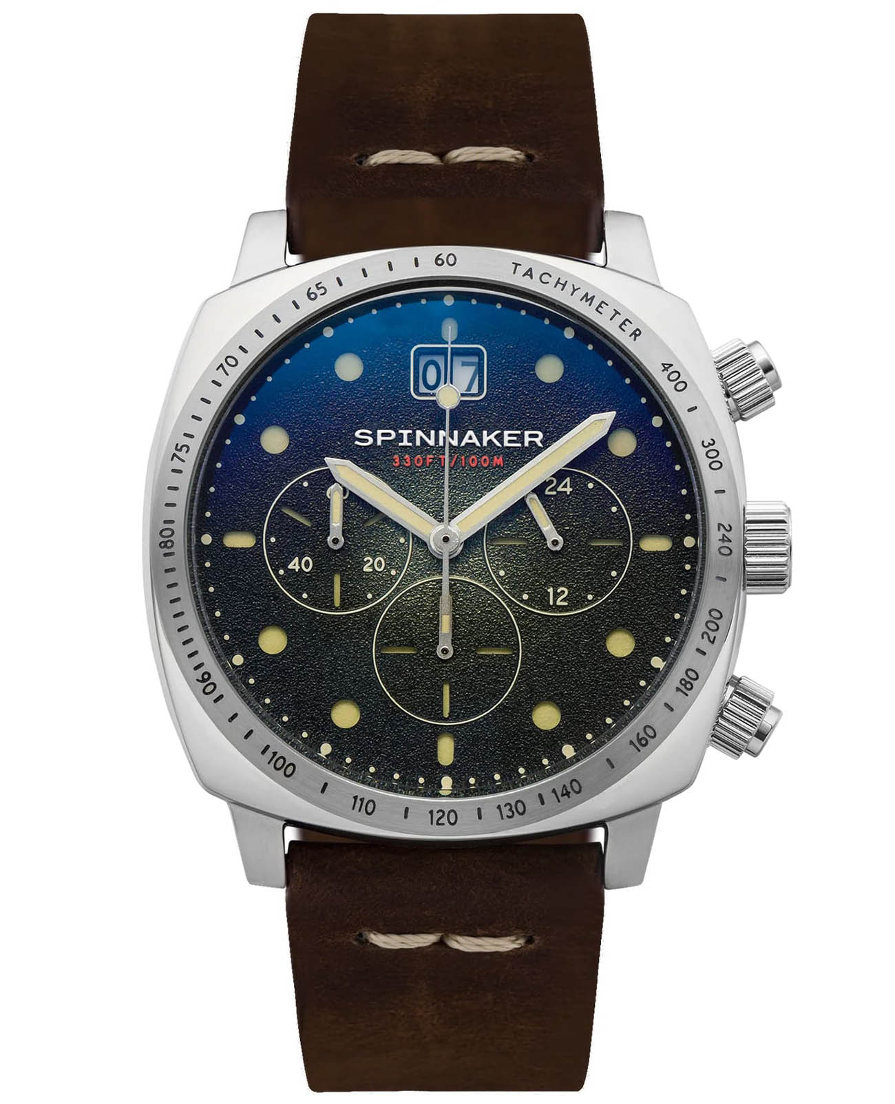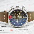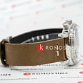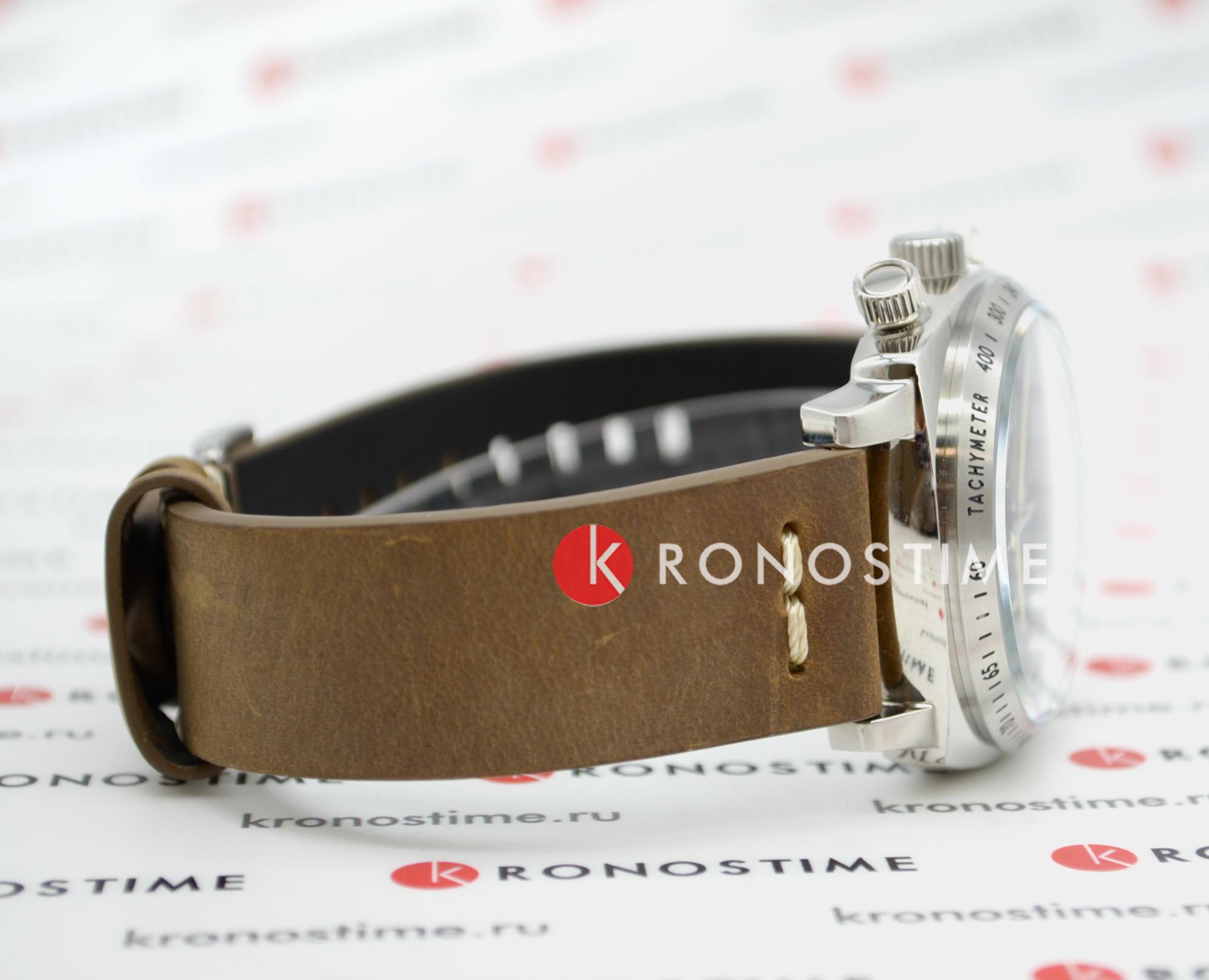 Мужской кварцевый хронографХронографФункция позволяет измерять отрезки времени с особой точностью: часы, минуты, секунды. Верным признаком хронографа является наличие на циферблате 3 дополнительных окошек-счётчиков. с секундомеромСекундомерСекундоме́р — прибор, способный измерять интервалы времени с точностью до долей секунды. и тахиметромТахиметрРазмеченная шкала, располагается на ободке или безеле часов. Тахиметр позволяет рассчитать скорость на определённом участке пути, расстояние измеряется в километрах или милях.. Калибр механизма TMI VK73. Центральные часовая и минутная стрелки, секундная стрелка вынесена на малый циферблат. Большая дата в позиции 12 часов. 12/24х часовой формат времени. Корпус выполнен из нержавеющей стали. Коричневый кожаный ремешок шириной 22 мм, стандартная застежка. Циферблат с люминесцентным покрытиемЛюминесцентное покрытиеПозволяет считывать показания времени в темноте. Производители наносят на стрелки, часовые индексы, безель или поверхность циферблата светонакопительный состав, дающий холодное свечение. стрелок и меток, дополнен выпуклым минеральным стекломМинеральное стеклоМинеральное стекло представляет собой искусственно выращенный минерал кварца. Такое стекло отличается особой устойчивостью к повреждениям и царапинам. Уступает по некоторым качествам сапфировому стеклу. , устойчивым к мелким механическим повреждениям. Водостойкость WR 100 (плавание без погружения).
