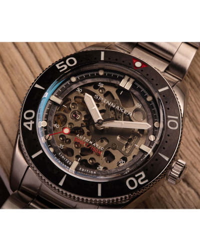 Мужские итальянские часы с автоподзаводом Spinnaker Croft SP-5095-22, механический механизм (автоматический калибр) с высокой точностью. Циферблат с люминесцентным покрытиемЛюминесцентное покрытиеПозволяет считывать показания времени в темноте. Производители наносят на стрелки, часовые индексы, безель или поверхность циферблата светонакопительный состав, дающий холодное свечение. стрелок и меток дополнен сапфировым стекломСапфировое стеклоПрочный и надёжный материал из кристалла сапфира синтетического происхождения, характеризующийся особой твёрдостью и устойчивостью к царапинам и повреждениям., устойчивым к появлению царапин и обладающее высокой прозрачностью. Класс водозащиты: 150 метров, позволит плавать, нырять и заниматься другими водными видами спорта. Корпус часов изготовлен из стали. Стальной браслет на раскладной застёжкеРаскладная застёжкаТакой тип застёжки используется только на браслетах из металла. Она никогда не раскрывается полностью, происходит разделение на 2 и более частей. Раскладывающая застёжка снизит вероятность потери часов к минимуму.. БезельБезельВнешний ободок, закрепляющий стекло. В спортивных часах так называется поворотное кольцо с делениями на циферблате, выполняет роль таймера – замеряет отрезки времени на шкале. Неподвижный безель – элемент декора. Однонаправленно вращающийся безель на дайверских часах позволяет фиксировать моменты погружения и выныривания на поверхность. с PVD-покрытиемPVDУльтратонкое покрытие наносится в технике вакуумного напыления, сочетает в себе нитрид титана особой прочности со слоем золота или оксида хрома. Несёт в себе декоративную или защитную функцию..