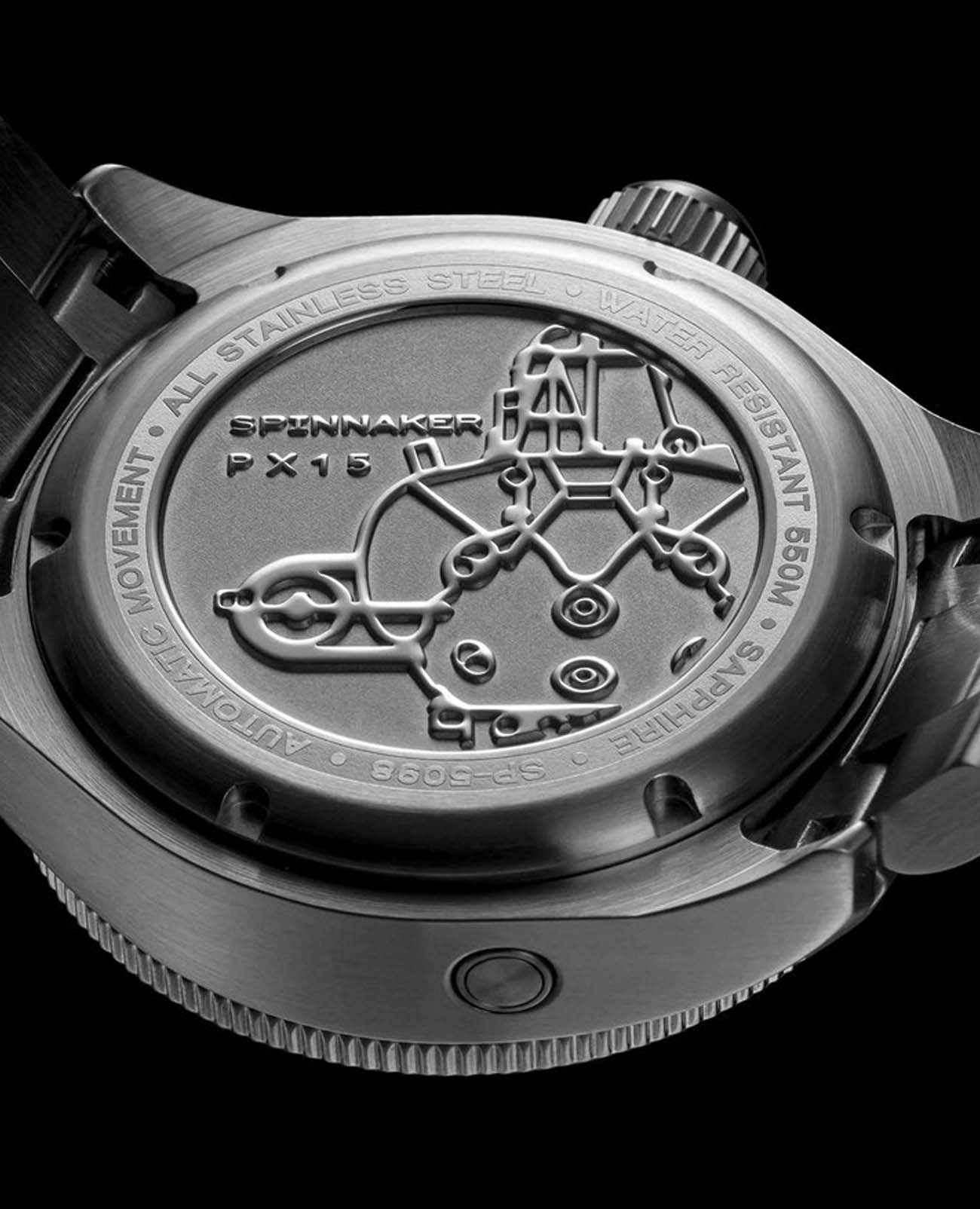 Мужские итальянские часы Spinnaker Spence SP-5098-22, механический механизм (автоматический калибр) с высокой точностью. Циферблат с люминесцентным покрытиемЛюминесцентное покрытиеПозволяет считывать показания времени в темноте. Производители наносят на стрелки, часовые индексы, безель или поверхность циферблата светонакопительный состав, дающий холодное свечение. стрелок и меток, дополнен сапфировым стекломСапфировое стеклоПрочный и надёжный материал из кристалла сапфира синтетического происхождения, характеризующийся особой твёрдостью и устойчивостью к царапинам и повреждениям., устойчивым к появлению царапин и обладающее высокой прозрачностью. Вращающийся безельБезельВнешний ободок, закрепляющий стекло. В спортивных часах так называется поворотное кольцо с делениями на циферблате, выполняет роль таймера – замеряет отрезки времени на шкале. Неподвижный безель – элемент декора. Однонаправленно вращающийся безель на дайверских часах позволяет фиксировать моменты погружения и выныривания на поверхность. с IP-покрытиемIP-покрытиеМетод ионного напыления. Демонстрирует повышенную устойчивость к истиранию, окислению и химическим веществам. Под воздействием высокого давления и температуры около 1500°C молекулы металла надёжно соединяются с частицами корпуса часов.. Класс водозащиты: 550 метров, позволит плавать, нырять и заниматься другими водными видами спорта. Корпус часов изготовлен из стали. Браслет с раскладной застёжкойРаскладная застёжкаТакой тип застёжки используется только на браслетах из металла. Она никогда не раскрывается полностью, происходит разделение на 2 и более частей. Раскладывающая застёжка снизит вероятность потери часов к минимуму..