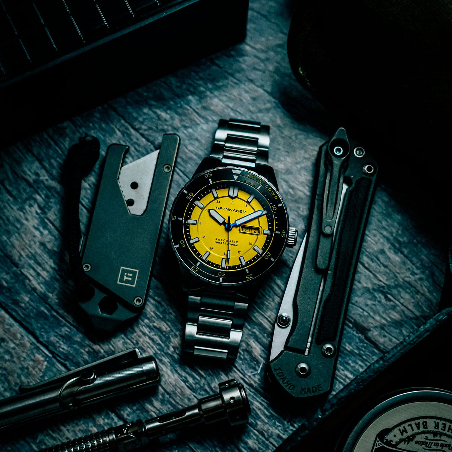 Мужские итальянские часы Spinnaker Hass SP-5099-33 с надёжным автоматическим механизмом. Сапфировое стеклоСапфировое стеклоПрочный и надёжный материал из кристалла сапфира синтетического происхождения, характеризующийся особой твёрдостью и устойчивостью к царапинам и повреждениям. с антибликовым покрытиемАнтибликовое покрытиеСлой оксида металла в 0,13-0,3 микрон, благодаря которому стекло часов не бликует и не отражает свет. Антибликовое покрытие уменьшает отражение света в 10 раз, обеспечивая отличную читаемость показателей циферблата., устойчивое к появлению царапин и обладающее высокой прозрачностью. Класс водозащиты: 300 метров, позволит плавать, нырять и заниматься другими водными видами спорта. Корпус часов изготовлен из нержавеющей стали с поворотным безелемБезельВнешний ободок, закрепляющий стекло. В спортивных часах так называется поворотное кольцо с делениями на циферблате, выполняет роль таймера – замеряет отрезки времени на шкале. Неподвижный безель – элемент декора. Однонаправленно вращающийся безель на дайверских часах позволяет фиксировать моменты погружения и выныривания на поверхность. с IP-покрытиемIP-покрытиеМетод ионного напыления. Демонстрирует повышенную устойчивость к истиранию, окислению и химическим веществам. Под воздействием высокого давления и температуры около 1500°C молекулы металла надёжно соединяются с частицами корпуса часов.. Браслет выполнен из нержавеющей стали на раскладной застёжкеРаскладная застёжкаТакой тип застёжки используется только на браслетах из металла. Она никогда не раскрывается полностью, происходит разделение на 2 и более частей. Раскладывающая застёжка снизит вероятность потери часов к минимуму.. Стрелки и метки с люминесцентным покрытиемЛюминесцентное покрытиеПозволяет считывать показания времени в темноте. Производители наносят на стрелки, часовые индексы, безель или поверхность циферблата светонакопительный состав, дающий холодное свечение.. Окошко дня недели и даты находится в положении 3 часа.
