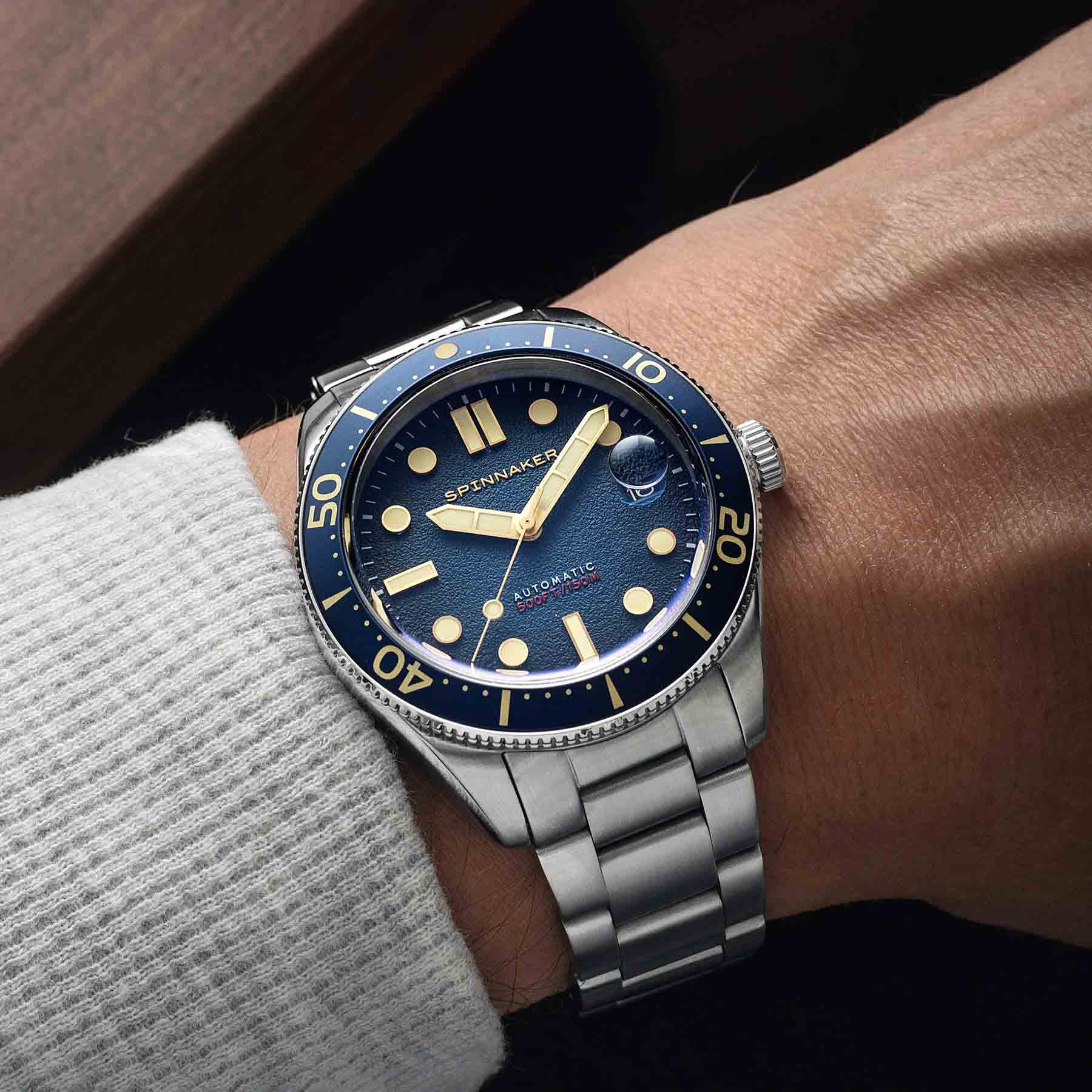 Мужские итальянские часы Spinnaker Croft SP-5100-22, механический механизм (автоматический калибр) с высокой точностью. Циферблат с люминесцентным покрытиемЛюминесцентное покрытиеПозволяет считывать показания времени в темноте. Производители наносят на стрелки, часовые индексы, безель или поверхность циферблата светонакопительный состав, дающий холодное свечение. стрелок и меток, дополнен сапфировым стекломСапфировое стеклоПрочный и надёжный материал из кристалла сапфира синтетического происхождения, характеризующийся особой твёрдостью и устойчивостью к царапинам и повреждениям., устойчивым к появлению царапин и обладающее высокой прозрачностью. БезельБезельВнешний ободок, закрепляющий стекло. В спортивных часах так называется поворотное кольцо с делениями на циферблате, выполняет роль таймера – замеряет отрезки времени на шкале. Неподвижный безель – элемент декора. Однонаправленно вращающийся безель на дайверских часах позволяет фиксировать моменты погружения и выныривания на поверхность. с PVD-покрытиемPVDУльтратонкое покрытие наносится в технике вакуумного напыления, сочетает в себе нитрид титана особой прочности со слоем золота или оксида хрома. Несёт в себе декоративную или защитную функцию.. Класс водозащиты: 150 метров, позволит плавать, нырять и заниматься другими водными видами спорта. Корпус часов изготовлен из стали. Браслет с раскладной застёжкойРаскладная застёжкаТакой тип застёжки используется только на браслетах из металла. Она никогда не раскрывается полностью, происходит разделение на 2 и более частей. Раскладывающая застёжка снизит вероятность потери часов к минимуму..