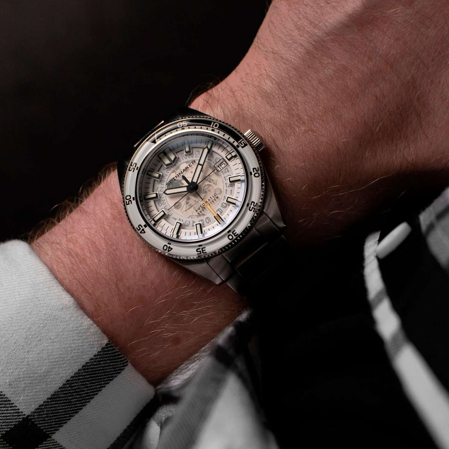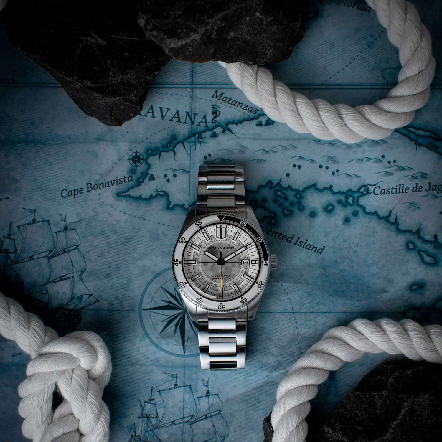 Мужские механические часы Spinnaker Fleuss SP-5118-33 с японским автоматическим механизмом, заключенные в круглый корпус диаметром 43 мм из высококачественной нержавеющей стали 316L. Модель привлекает внимание уникальным белым скелетонизированным циферблатом, сквозь который можно наблюдать работу точного механизма, дополненным люминесцентным покрытием Super-LumiNova®Люминесцентное покрытиеПозволяет считывать показания времени в темноте. Производители наносят на стрелки, часовые индексы, безель или поверхность циферблата светонакопительный состав, дающий холодное свечение. на стрелках и часовых метках для превосходной видимости в условиях недостаточной освещенности. Надежную защиту циферблата обеспечивает сапфировое стеклоСапфировое стеклоПрочный и надёжный материал из кристалла сапфира синтетического происхождения, характеризующийся особой твёрдостью и устойчивостью к царапинам и повреждениям. с антибликовым покрытием, отличающееся исключительной устойчивостью к царапинам, а впечатляющая водонепроницаемость до 150 метров (15 ATM) делает эти часы идеальным выбором для любителей плавания и снорклинга. Функциональный вращающийся безель с однонаправленным движением дополняет практичные характеристики модели, в то время как стальной браслет шириной 22 мм с раскладной застежкойРаскладная застёжкаТакой тип застёжки используется только на браслетах из металла. Она никогда не раскрывается полностью, происходит разделение на 2 и более частей. Раскладывающая застёжка снизит вероятность потери часов к минимуму. гарантирует надежную и комфортную посадку на запястье. В комплект также входит дополнительный кожаный ремешок, предоставляющий возможность разнообразить стиль ношения.