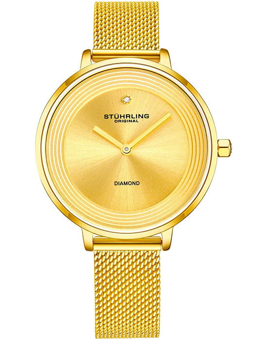 Stuhrling 3946.3 — элегантные женские часы, объединяющие строгую классику и современную функциональность. Корпус из нержавеющей стали с PVD-покрытиемPVDУльтратонкое покрытие наносится в технике вакуумного напыления, сочетает в себе нитрид титана особой прочности со слоем золота или оксида хрома. Несёт в себе декоративную или защитную функцию. создают ощущение монолитной надёжности, а глубокий циферблат украшенный кристаллом придаёт модели выразительность и характер. Стальной браслет миланского плетения с PVD-покрытиемPVDУльтратонкое покрытие наносится в технике вакуумного напыления, сочетает в себе нитрид титана особой прочности со слоем золота или оксида хрома. Несёт в себе декоративную или защитную функцию. на раскладном замкеРаскладной замокДанный вариант застежки используется только на часах с металлическим браслетом. Отличительная особенность такого крепления в том, что длина браслета становится универсальной и вы можете самостоятельно отрегулировать нужный вам размер – застежка просто двигается по браслету часов.. Прочное стекло KrysternaKrysternaKrysterna — инновационное стекло для наручных часов. Благодаря уникальной структуре, Krysterna объединяет ключевые преимущества двух материалов: твердость сапфира, защищающую от царапин, и гибкость минерального стекла, обеспечивающую устойчивость к деформациям. Такая комбинация делает его идеальным решением для часов, подверженных экстремальным нагрузкам, сохраняя при этом оптическую прозрачность. защищает циферблат от царапин, а надёжный кварцевый механизм гарантирует стабильную точность. Stuhrling — выбор уверенной девушки, ценящей сочетание функциональности, лаконичного дизайна и безупречной отделки.