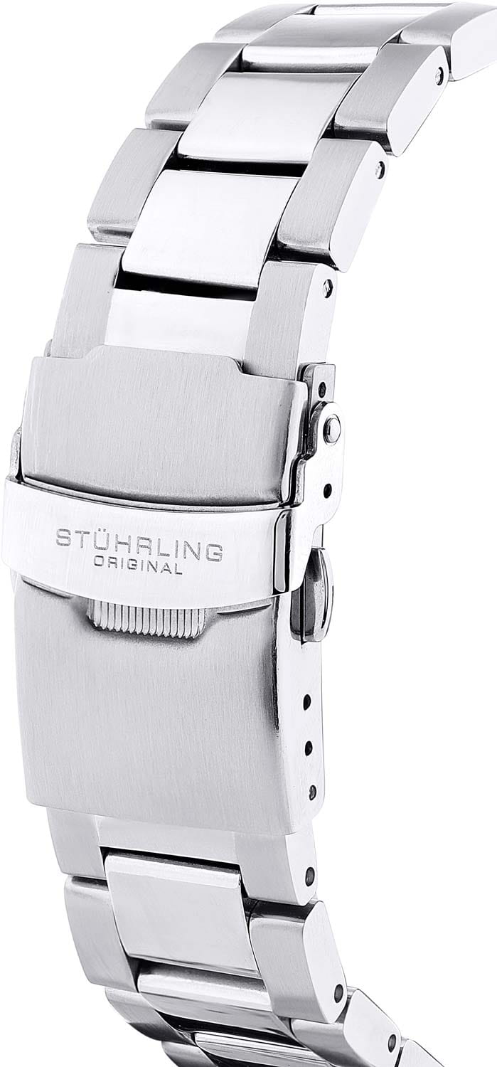 Stuhrling 4048.3 — стильные мужские часы в духе морского дайверского дизайна. Глубокий циферблат с радиальным переливом и крупные метки/стрелки с люминесцентным покрытиемЛюминесцентное покрытиеПозволяет считывать показания времени в темноте. Производители наносят на стрелки, часовые индексы, безель или поверхность циферблата светонакопительный состав, дающий холодное свечение. обеспечивают отличную читаемость, вращающийся безельБезельВнешний ободок, закрепляющий стекло. В спортивных часах так называется поворотное кольцо с делениями на циферблате, выполняет роль таймера – замеряет отрезки времени на шкале. Неподвижный безель – элемент декора. Однонаправленно вращающийся безель на дайверских часах позволяет фиксировать моменты погружения и выныривания на поверхность. с PVD-покрытиемPVDУльтратонкое покрытие наносится в технике вакуумного напыления, сочетает в себе нитрид титана особой прочности со слоем золота или оксида хрома. Несёт в себе декоративную или защитную функцию. подчёркивает спортивный характер. Браслет из нержавеющей стали, удобная раскладная застёжкаРаскладная застёжкаТакой тип застёжки используется только на браслетах из металла. Она никогда не раскрывается полностью, происходит разделение на 2 и более частей. Раскладывающая застёжка снизит вероятность потери часов к минимуму. фиксирует часы на запястье. Циферблат прикрыт стеклом KrysternaKrysternaKrysterna — инновационное стекло для наручных часов. Благодаря уникальной структуре, Krysterna объединяет ключевые преимущества двух материалов: твердость сапфира, защищающую от царапин, и гибкость минерального стекла, обеспечивающую устойчивость к деформациям. Такая комбинация делает его идеальным решением для часов, подверженных экстремальным нагрузкам, сохраняя при этом оптическую прозрачность. с высокой стойкостью к царапинам. Надёжный спутник для повседневной настроения и активного отдыха.