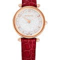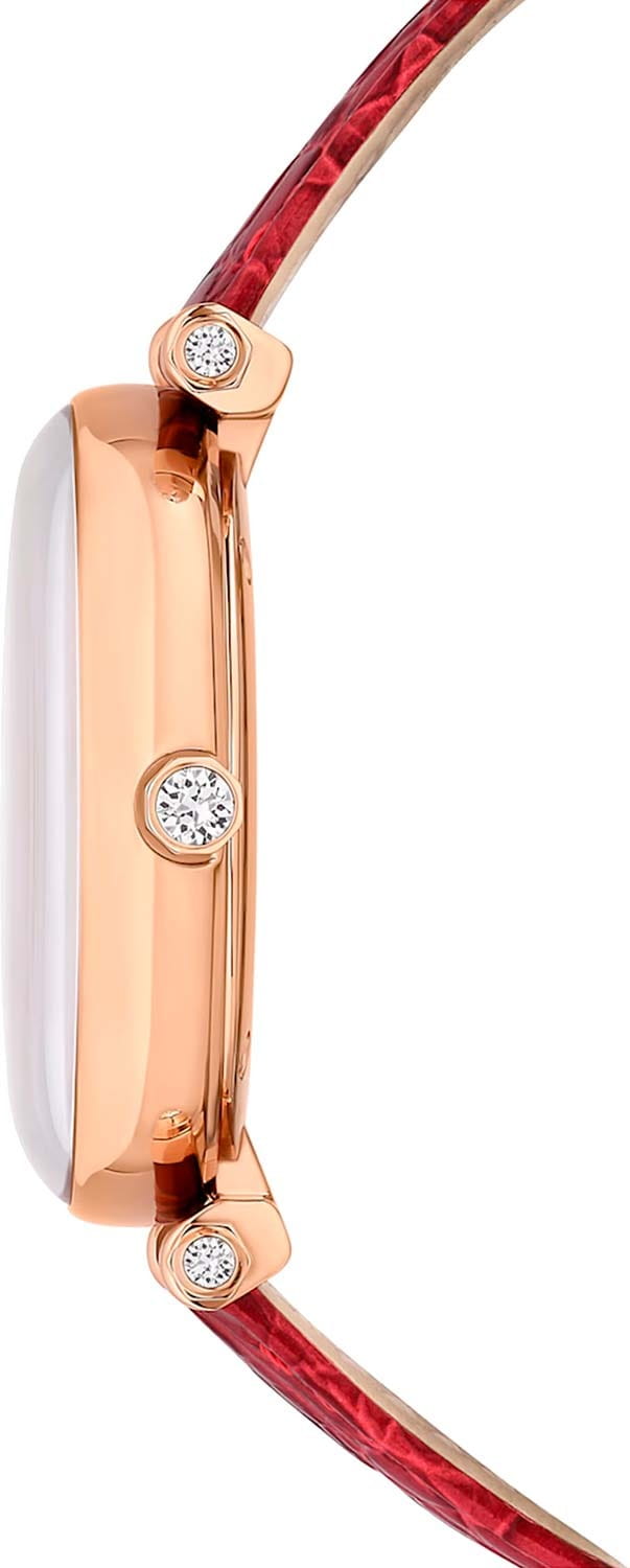 Часы Swarovski 5656905 представляют собой идеальное сочетание роскоши и изысканности, которые подчеркнут вашу индивидуальность и стиль. Эти швейцарские часы оснащены надежным кварцевым механизмом, гарантирующим точность времени. Круглый корпус из нержавеющей стали с PVDPVDУльтратонкое покрытие наносится в технике вакуумного напыления, сочетает в себе нитрид титана особой прочности со слоем золота или оксида хрома. Несёт в себе декоративную или защитную функцию. покрытием оттенка розового золота создает элегантный и утонченный образ. Под куполообразным минеральным стекломМинеральное стеклоМинеральное стекло представляет собой искусственно выращенный минерал кварца. Такое стекло отличается особой устойчивостью к повреждениям и царапинам. Уступает по некоторым качествам сапфировому стеклу. расположен серебристый циферблат, декорированный примерно тысячью сверкающих кристаллов Swarovski. Метки в виде штрихов и арабских цифр добавляют классический акцент, а граненая заводная головка украшена кристаллом круглой огранки. Ремешок из натуральной итальянской телячьей кожи красного цвета, с тиснением под кожу ящерицы, обеспечивает комфорт и стиль, а стандартная застежка гарантирует надежную фиксацию на запястье. Водозащита 50WR позволяет носить часы в различных условиях, защищая их от воздействия влаги. С диаметром корпуса 35 мм и длиной ремешка 16,5 см, эти часы идеально подходят для любого случая, создавая выразительный и эффектный образ.