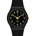 Часы Swatch Gent Standard GB274 — это стильный и современный аксессуар для тех, кто ценит лёгкость и комфорт. Часы идеально подойдут как для мужчин, так и для женщин. Модель Gent Standard GB274 сочетает в себе кварцевый механизм, элегантное черное и золотое оформление, а также матовый ремешок из силикона, что делает их идеальными для любого образа. На часовую, минутную стрелки нанесено люминесцентное покрытиеЛюминесцентное покрытиеПозволяет считывать показания времени в темноте. Производители наносят на стрелки, часовые индексы, безель или поверхность циферблата светонакопительный состав, дающий холодное свечение., которое светится в темноте, создавая необычное изображение. Водозащита 30 метров делает часы практичными для повседневного использования. Эти часы подойдут для повседневного ношения и станут ярким акцентом в вашем наряде.