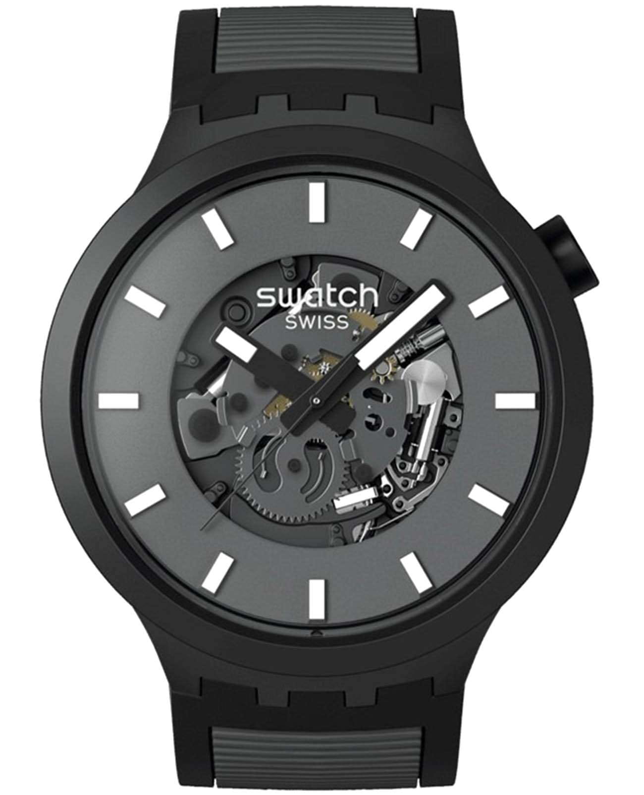 Часы Swatch SB05B113 — это стильный и современный аксессуар для тех, кто ценит лёгкость и комфорт. Часы идеально подойдут как для мужчин, так и для женщин. Эти часы большого размера отличаются темно-серым открытым циферблатом, 3D-индексами с белым принтом, светящимися в темноте черными часовой и минутной стрелками благодаря  люминесцентному покрытиюЛюминесцентное покрытиеПозволяет считывать показания времени в темноте. Производители наносят на стрелки, часовые индексы, безель или поверхность циферблата светонакопительный состав, дающий холодное свечение., черной секундной стрелкой и темно-серыми элементами часового механизма, покрытого стеклом из биоматериала. Матовый чёрный корпус из биоматериала тон-в-тон дополняется матовым чёрным ремешком с темно-серой текстурой, матово-чёрными тренчиками и матово-чёрной пряжкой-половинкой. Водозащита 30 метров делает часы практичными для повседневного использования. Эти часы подойдут для повседневного ношения и станут ярким акцентом в вашем наряде.