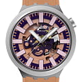 Часы Swatch SB07S119 — это стильный и современный аксессуар для тех, кто ценит лёгкость и комфорт. Часы идеально подойдут как для мужчин, так и для женщин. Эти крупные часы с темно-фиолетовым открытым циферблатом, сквозь который просматриваются элементы ходового механизма, розовыми часовыми отметками и бежевой минутной шкалой смотрятся очень эффектно. Отсчет времени ведут серебристые стрелки – часовая и минутная с эффектом свечения в темноте благодаря люминесцентному покрытиюЛюминесцентное покрытиеПозволяет считывать показания времени в темноте. Производители наносят на стрелки, часовые индексы, безель или поверхность циферблата светонакопительный состав, дающий холодное свечение., а также серая секундная стрелка. Корпус и пушер из нержавеющей стали, матированные методом пескоструйной обработки, выделяются на фоне матового бежевого ремешка с бежевым и светло-розовым тренчиками и стальной полупряжкой. Водозащита 30 метров делает часы практичными для повседневного использования. Эти часы подойдут для повседневного ношения и станут ярким акцентом в вашем наряде.