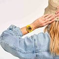 Часы Swatch SO29J100 — эффектный и надежный аксессуар. Желтый силиконовый ремешок и корпус этих часов NEW GENT BIOSOURCED контрастируют с циферблатом, который имеет стекло из биоматериала, фиолетовое кольцо и стрелки с люминесцентным покрытиемЛюминесцентное покрытиеПозволяет считывать показания времени в темноте. Производители наносят на стрелки, часовые индексы, безель или поверхность циферблата светонакопительный состав, дающий холодное свечение.. Циферблат прозрачный, позволяет наблюдать механизм часов. Ремешок на стандартной застёжке. Внутри часов установлен надежный кварцевый механизм, который обеспечивает точность хода. Эти часы водонепроницаемы до 30 метров, что позволяет не беспокоиться о случайных брызгах или дождевых каплях. Swatch SO29J100 — это идеальный выбор для тех, кто ценит сочетание стиля, комфорта и функциональности в одном аксессуаре.