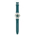 Часы Swatch SO29Z119 — стильный и надежный аксессуар. Модель часов выпущена ко Дню отца, имеет надпись "YOU’RE A STAR" ("ТЫ ЗВЕЗДА"). Корпус матовый полупрозрачный из биоматериала, циферблат серый зеркальный с зелено-золотой звездой. Зеленый ремешок из силикона с двумя однотонными тренчиками. В комплекте также четыре дополнительных тренчика из прозрачного силикона с принтом в виде эмоджи. Циферблат покрыт биостеклом. Ремешок на классической застежке. Внутри часов установлен надежный кварцевый механизм, который обеспечивает точность хода. Эти часы водонепроницаемы до 30 метров, что позволяет не беспокоиться о случайных брызгах или дождевых каплях. Swatch SO29Z119 — это идеальный выбор для тех, кто ценит сочетание стиля, комфорта и функциональности в одном аксессуаре.
