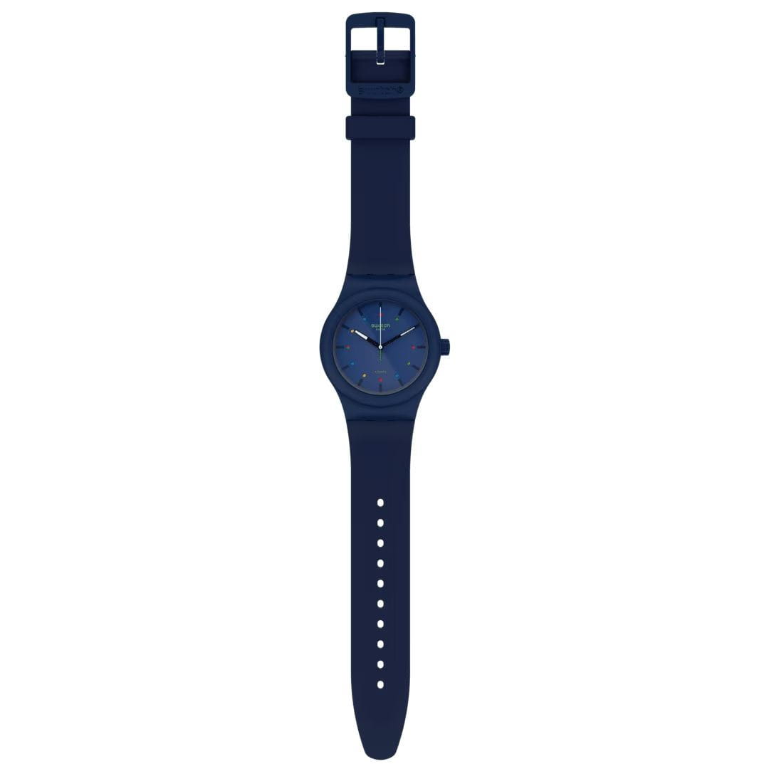 Часы Swatch SO30N400 — стильный и удобный аксессуар. Новейшее дополнение к коллекции 1983 года — это SISTEM51 из биоматериалов. Темно-синий цвет часов украшен цветными индексами, оттенки которых перекликаются с декорированным механизмом, который можно увидеть с задней стороны корпуса часов. На нем написано сообщение, которое является настоящим призывом к действию: "не опаздывай" — в соответствии с моделями Gent и New Gent, уже представленными на рынке. Часы выполнены в темно-синем цвете с ярко-зелеными надписями на циферблате и черно-белыми стрелками. Часовая и минутная стрелки - с люминесцентным покрытиемЛюминесцентное покрытиеПозволяет считывать показания времени в темноте. Производители наносят на стрелки, часовые индексы, безель или поверхность циферблата светонакопительный состав, дающий холодное свечение., светятся в темноте. Ремешок из биоматериала на стандартной застёжке. Эти часы водонепроницаемы до 30 метров, что позволяет не беспокоиться о случайных брызгах или дождевых каплях. Swatch SO30N400 — это идеальный выбор для тех, кто ценит сочетание стиля, комфорта и функциональности в одном аксессуаре.