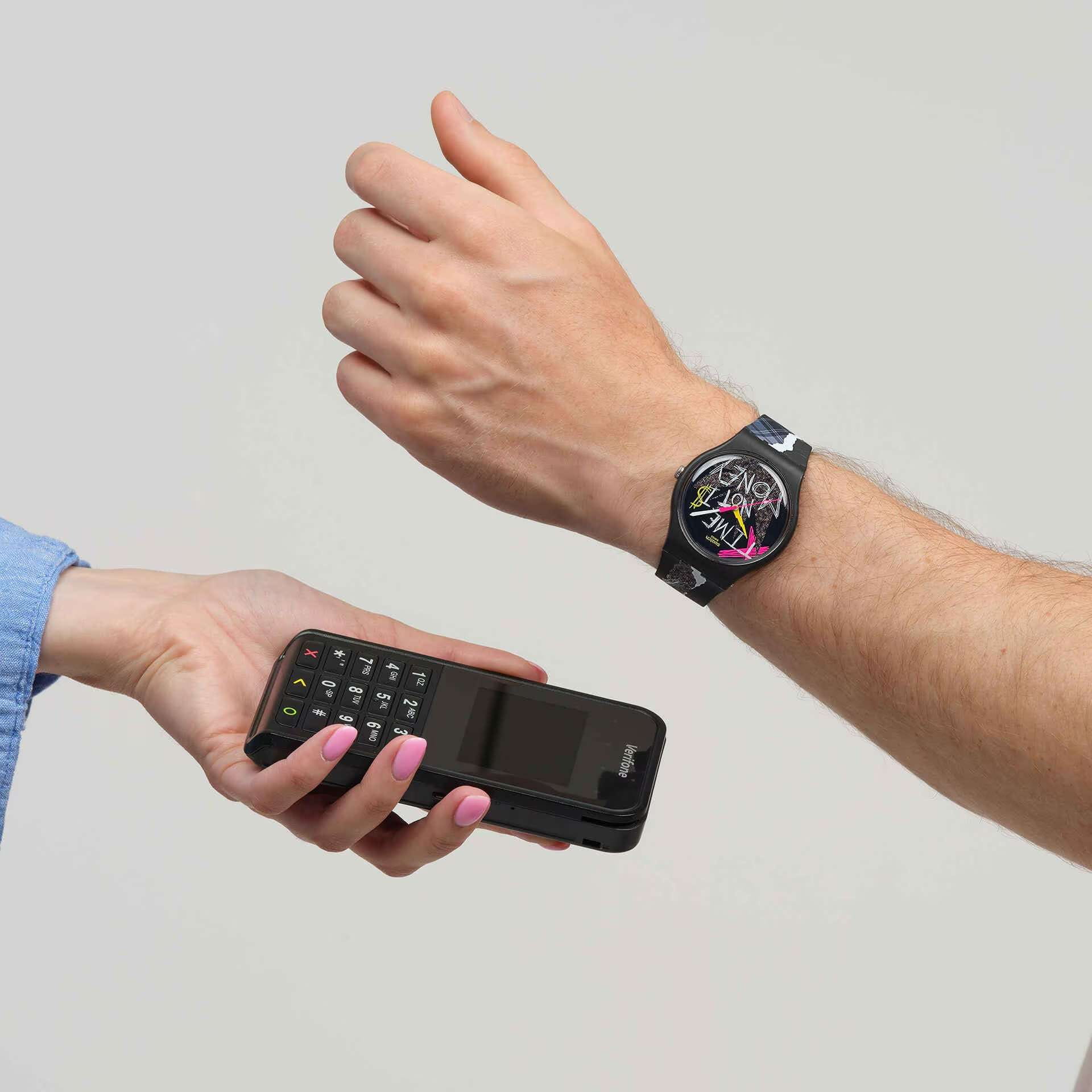Женские наручные часы Swatch BLANK CHECK SO32B122-5300 — это стильный и современный аксессуар для тех, кто ценит лёгкость и комфорт. На черном циферблате этих часов размещен броский цветной принт с надписью: «Time is not money» («Время - не деньги»). Корпус выполнен из биокерамики,  диаметром 41 мм и толщиной 9.85 мм, что обеспечивает долговечность и утончённый внешний вид. Циферблат защищён органическим стеклом, устойчивым к повреждениям. Модель оснащена кварцевым механизмом, обеспечивающим высокую точность хода. Желтая часовая стрелка в виде молнии, белая минутная и розовая секундная с люминесцентным покрытиемЛюминесцентное покрытиеПозволяет считывать показания времени в темноте. Производители наносят на стрелки, часовые индексы, безель или поверхность циферблата светонакопительный состав, дающий холодное свечение.. Силиконовый ремешок на стандартной застёжке гармонично дополняет корпус и обеспечивает комфортное ношение. Водозащита 30 метров позволит защитить корпус от случайных брызг или капель дождя. Эти часы подойдут для повседневного ношения и станут ярким акцентом в вашем наряде. Эти часы оснащены функцией SwatchPAY!.