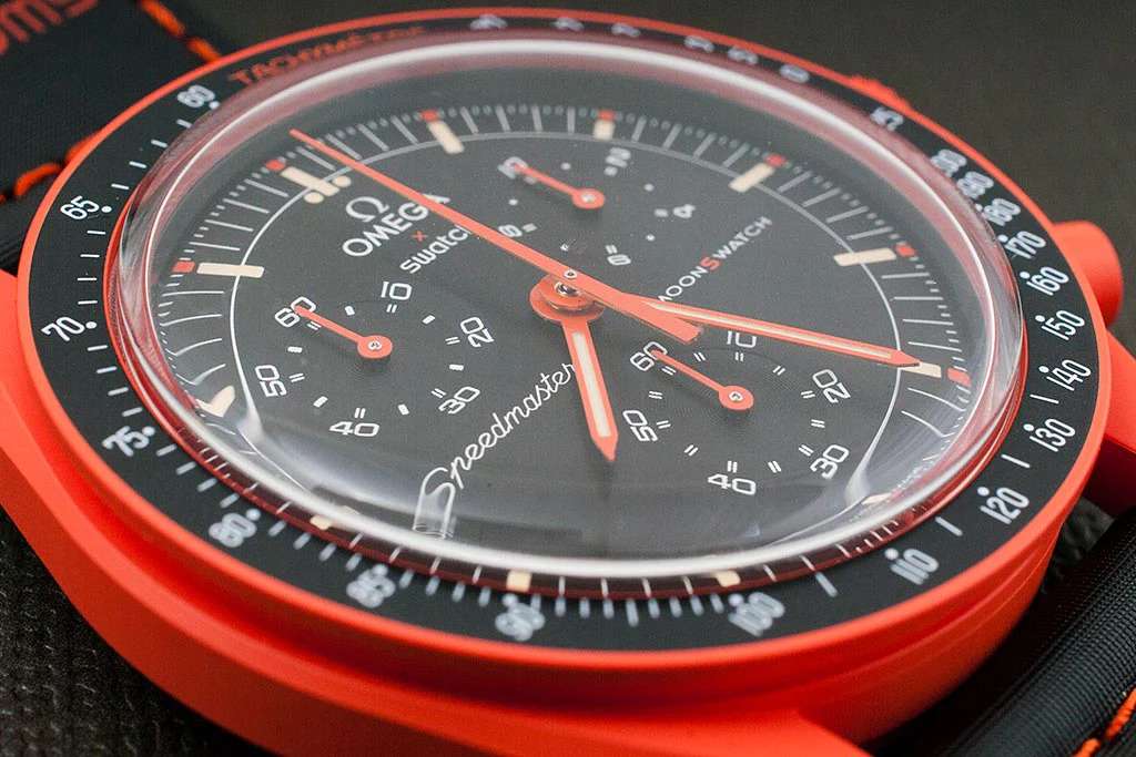 Швейцарские мужские часы Swatch x Omega Bioceramic Moonswatch Mission on Earth: Lava SO33O100 с хронографом