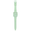 Swatch Square Bioceramic Standard SO34G701 "WHAT IF...MINT?" - это стильные квадратные часы с корпусом 41,8*41,8 мм из матовой биокерамики мятного цвета. Модель оснащена кварцевым механизмом, окошком даты и дня недели, водонепроницаемостью до 20 метров. Часы имеют зеленый матовый ремешок из биоматериала и стекло из биоматериала. Стрелки с люминесцентным покрытиемЛюминесцентное покрытиеПозволяет считывать показания времени в темноте. Производители наносят на стрелки, часовые индексы, безель или поверхность циферблата светонакопительный состав, дающий холодное свечение.. Эта экологичная модель унисекс сочетает инновационные материалы с необычным зелено-белым дизайном, вдохновленным оригинальным Swatch 1983 года, и подходит для тех, кто ценит минимализм и заботу об окружающей среде.