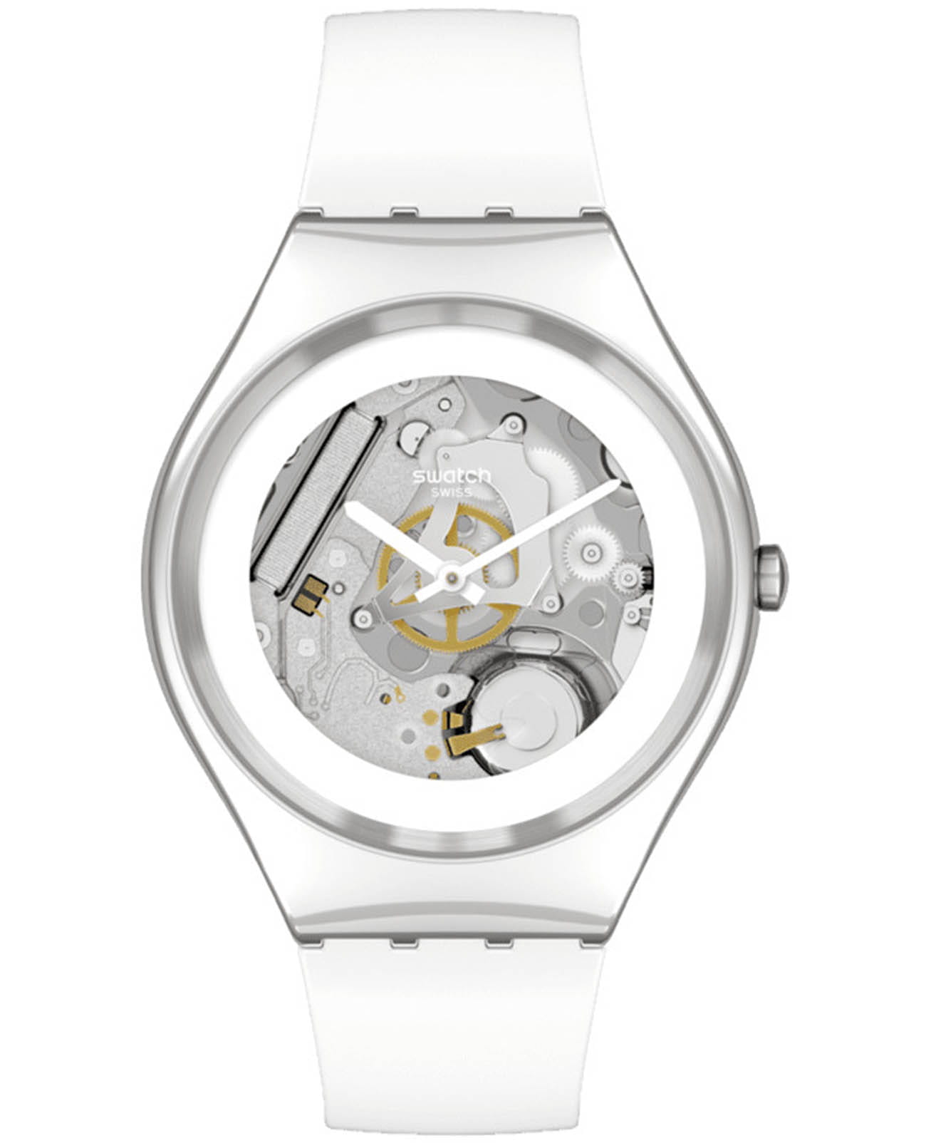 Часы Swatch SYXS138 — это стильный и современный аксессуар для тех, кто ценит лёгкость и комфорт. Часы идеально подойдут как для мужчин, так и для женщин. Эта невероятно тонкая модель часов имеет открытый циферблат с белым принтом, белые стрелки, минеральное стеклоМинеральное стеклоМинеральное стекло представляет собой искусственно выращенный минерал кварца. Такое стекло отличается особой устойчивостью к повреждениям и царапинам. Уступает по некоторым качествам сапфировому стеклу. и полированный корпус из нержавеющей стали. Эти стальные часы дополнены белым силиконовым ремешком с пряжкой и благодаря своему стилю подойдут абсолютно всем. Водозащита 30 метров делает часы практичными для повседневного использования. Эти часы подойдут для повседневного ношения и станут ярким акцентом в вашем наряде.