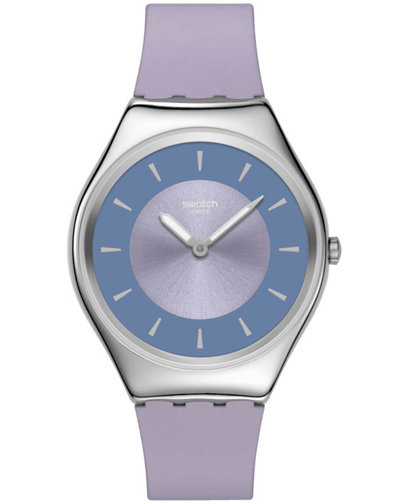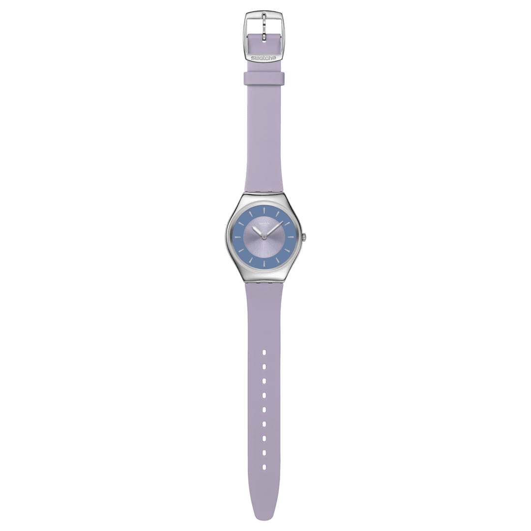 Часы Swatch SYXS157 — это стильный и современный аксессуар для тех, кто ценит лёгкость и комфорт. Часы идеально подойдут как для мужчин, так и для женщин. Эти ультратонкие часы имеют сиреневый циферблат с радиальной полировкой, фиолетовым внешним кольцевым принтом и бежевыми часовыми индексами, а также серебристые часовую и минутную стрелки с эффектом свечения в темноте благодаря люминесцентному покрытиюЛюминесцентное покрытиеПозволяет считывать показания времени в темноте. Производители наносят на стрелки, часовые индексы, безель или поверхность циферблата светонакопительный состав, дающий холодное свечение.. Блестящий корпус и пряжка из нержавеющей стали прекрасно сочетаются с сиреневым ремешком с тренчиком в тон и матово-фиолетовой изнанкой. Водозащита 30 метров делает часы практичными для повседневного использования. Эти часы подойдут для повседневного ношения и станут ярким акцентом в вашем наряде.