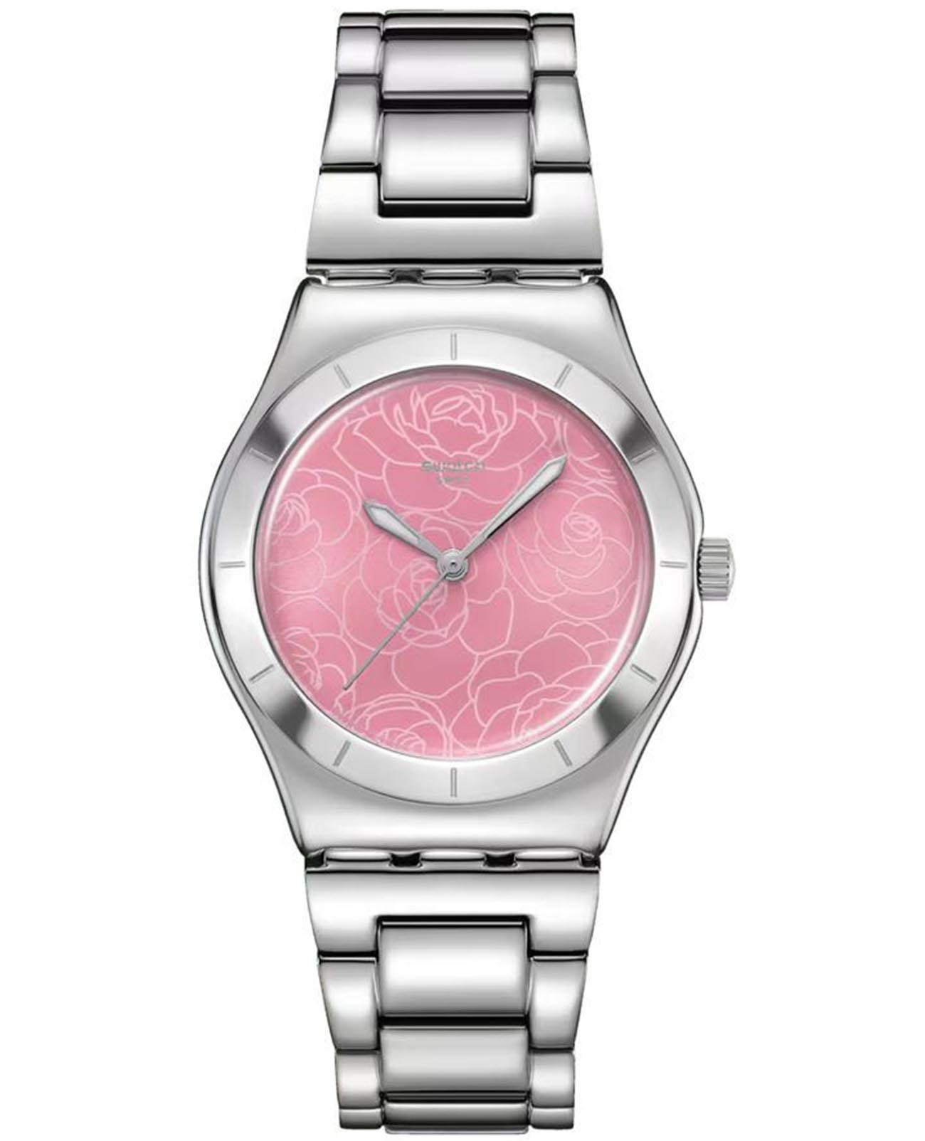 Модель Swatch YLS234G — это утончённые женские часы с изысканным дизайном и надёжным механизмом. Корпус диаметром 33 мм выполнен из нержавеющей стали, подчёркивая элегантность и долговечность модели. Циферблат украшен изящным цветочным узором, а стрелки и метки покрыты люминесцентным покрытиемЛюминесцентное покрытиеПозволяет считывать показания времени в темноте. Производители наносят на стрелки, часовые индексы, безель или поверхность циферблата светонакопительный состав, дающий холодное свечение., что обеспечивает хорошую читаемость в условиях недостаточного освещения.