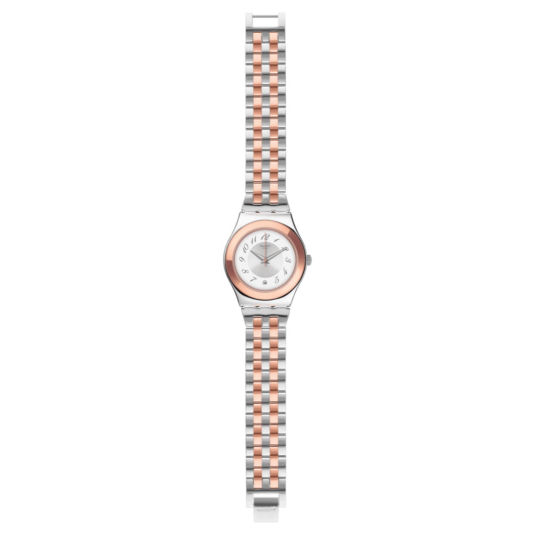 Часы Swatch YLS454G — это стильный и современный аксессуар для тех, кто ценит лёгкость и комфорт. Роскошные и классические часы YLS454G – это воплощение вековых традиций часового дела в сочетании с актуальным дизайном в стиле унисекс. Серебристый циферблат с радиальной полировкой и разноцветным принтом оснащен окошком даты в положении «6 часов» и безелемБезельВнешний ободок, закрепляющий стекло. В спортивных часах так называется поворотное кольцо с делениями на циферблате, выполняет роль таймера – замеряет отрезки времени на шкале. Неподвижный безель – элемент декора. Однонаправленно вращающийся безель на дайверских часах позволяет фиксировать моменты погружения и выныривания на поверхность. из нержавеющей стали с PVDPVDУльтратонкое покрытие наносится в технике вакуумного напыления, сочетает в себе нитрид титана особой прочности со слоем золота или оксида хрома. Несёт в себе декоративную или защитную функцию. покрытием оттенка розового золота, нанесенным вакуумным напылением. Полированный стальной корпус идеально дополняет изысканный регулируемый браслет, сделанный из сатинированной нержавеющей стали с покрытием того же цвета. Водозащита 30 метров делает часы практичными для повседневного использования. Эти часы подойдут для повседневного ношения и станут ярким акцентом в вашем наряде.
