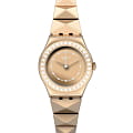 Часы Swatch YSG169G — это стильный и современный аксессуар для тех, кто ценит лёгкость и комфорт. Эти часы изготовлены из нержавеющей стали с PVDPVDУльтратонкое покрытие наносится в технике вакуумного напыления, сочетает в себе нитрид титана особой прочности со слоем золота или оксида хрома. Несёт в себе декоративную или защитную функцию. покрытием цвета розового золота, имеют регулируемый ремешок и циферблат цвета розового золота с зеркальным эффектом. Золотистый безельБезельВнешний ободок, закрепляющий стекло. В спортивных часах так называется поворотное кольцо с делениями на циферблате, выполняет роль таймера – замеряет отрезки времени на шкале. Неподвижный безель – элемент декора. Однонаправленно вращающийся безель на дайверских часах позволяет фиксировать моменты погружения и выныривания на поверхность. покрыт кристаллами. Водозащита 30 метров делает часы практичными для повседневного использования. Эти часы подойдут для повседневного ношения и станут ярким акцентом в вашем наряде.