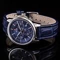 Мужские швейцарские часы-хронографХронографФункция позволяет измерять отрезки времени с особой точностью: часы, минуты, секунды. Верным признаком хронографа является наличие на циферблате 3 дополнительных окошек-счётчиков. с секундомеромСекундомерСекундоме́р — прибор, способный измерять интервалы времени с точностью до долей секунды. Swiss Military by Chrono SM34052.13, кварцевый механизм с высокой точностью. Сапфировое стеклоСапфировое стеклоПрочный и надёжный материал из кристалла сапфира синтетического происхождения, характеризующийся особой твёрдостью и устойчивостью к царапинам и повреждениям. устойчивое к мелким механическим повреждениям. Корпус часов изготовлен из нержавеющей стали. На циферблате расположены два дополнительных индикатора и окошко даты. Окошко даты находится в положении 4 часов. Стрелки с люминесцентным покрытиемЛюминесцентное покрытиеПозволяет считывать показания времени в темноте. Производители наносят на стрелки, часовые индексы, безель или поверхность циферблата светонакопительный состав, дающий холодное свечение.. Класс водозащиты: 100 метров, позволит плавать, нырять и заниматься другими водными видами спорта. Кожаный ремешок на стандартной застёжке.