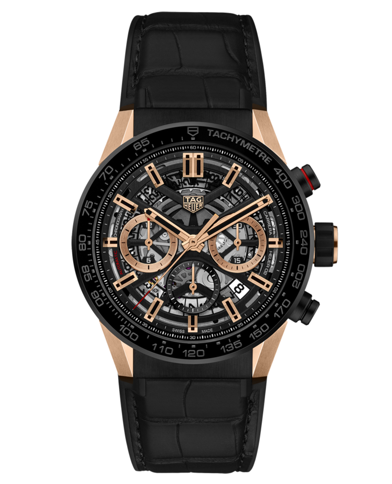 Потрясающие часы TAG Heuer Carrera Heuer 02 из стали с черным покрытием и розового золота с черным ремешком из кожи аллигатора и каучука. Этот автоматический хронограф диаметром 43 мм оснащен механизмом с запасом хода 80 часов, который хорошо просматривается через заднюю крышку из сапфирового стекла. TAG Heuer Carrera CBG2050.FC6426, механический механизм (автоматический калибр) с высокой точностью. Сапфировое стекло устойчивое к появлению царапин, обладающее высокой прозрачностью. Класс водозащиты: 100 метров, позволит плавать, нырять и заниматься другими водными видами спорта. Корпус часов изготовлен из стали, цвета.