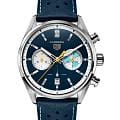 В великолепном исполнении эти часы-хронографХронографФункция позволяет измерять отрезки времени с особой точностью: часы, минуты, секунды. Верным признаком хронографа является наличие на циферблате 3 дополнительных окошек-счётчиков. TAG Heuer Carrera Chronograph CBN201N.FC6620 вдохновлены легендарной моделью Heuer 1950-х и 1960-х годов. Ограниченная серия с 500 экземплярами, каждый эксклюзивный экземпляр пронумерован. Циферблат синего цвета, дополненный бирюзовыми акцентами и яркими желтыми бликами, создает изысканный и уникальный вид. Часы оснащены мануфактурным механизмом TAG Heuer TH20-00. Механический механизм (автоматический калибр) с высокой точностью. Сапфировое стеклоСапфировое стеклоПрочный и надёжный материал из кристалла сапфира синтетического происхождения, характеризующийся особой твёрдостью и устойчивостью к царапинам и повреждениям. устойчивое к появлению царапин, обладающее высокой прозрачностью. Стрелки с люминесцентным покрытиемЛюминесцентное покрытиеПозволяет считывать показания времени в темноте. Производители наносят на стрелки, часовые индексы, безель или поверхность циферблата светонакопительный состав, дающий холодное свечение.. Класс водозащиты: 100 метров, позволит плавать, нырять и заниматься другими водными видами спорта. Корпус часов изготовлен из нержавеющей стали. Кожаный ремешок с раскладной застёжкойРаскладная застёжкаТакой тип застёжки используется только на браслетах из металла. Она никогда не раскрывается полностью, происходит разделение на 2 и более частей. Раскладывающая застёжка снизит вероятность потери часов к минимуму..