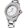 Женские швейцарские наручные кварцевые часы TAG Heuer Aquaracer Professional WBP1451.BA0622. Сапфировое стеклоСапфировое стеклоПрочный и надёжный материал из кристалла сапфира синтетического происхождения, характеризующийся особой твёрдостью и устойчивостью к царапинам и повреждениям. устойчивое к появлению царапин, обладающее высокой прозрачностью. Стрелки и метки с люминесцентным покрытиемЛюминесцентное покрытиеПозволяет считывать показания времени в темноте. Производители наносят на стрелки, часовые индексы, безель или поверхность циферблата светонакопительный состав, дающий холодное свечение.. Класс водозащиты: 200 метров, позволит плавать, нырять и заниматься другими водными видами спорта. Корпус часов изготовлен из нержавеющей стали. Браслет с раскладной застёжкойРаскладная застёжкаТакой тип застёжки используется только на браслетах из металла. Она никогда не раскрывается полностью, происходит разделение на 2 и более частей. Раскладывающая застёжка снизит вероятность потери часов к минимуму.. Вращающийся стальной безельБезельВнешний ободок, закрепляющий стекло. В спортивных часах так называется поворотное кольцо с делениями на циферблате, выполняет роль таймера – замеряет отрезки времени на шкале. Неподвижный безель – элемент декора. Однонаправленно вращающийся безель на дайверских часах позволяет фиксировать моменты погружения и выныривания на поверхность. и циферблат инкрустированы бриллиантами.