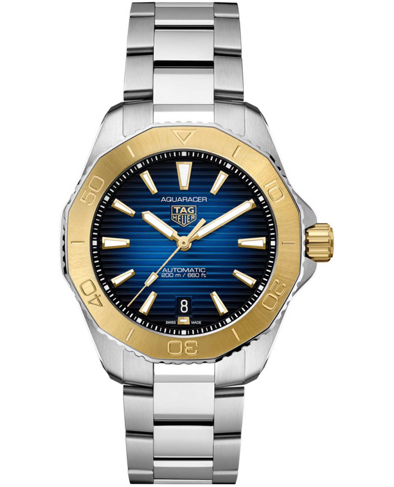 TAG Heuer Aquaracer Professional 200 Date WBP2150.BA0627 — это стильный мужской аксессуар, который сочетает элегантный дизайн и практичность. Высокая функциональность в нем сочетается с изысканной элегантностью, в то время как сапфировое стеклоСапфировое стеклоПрочный и надёжный материал из кристалла сапфира синтетического происхождения, характеризующийся особой твёрдостью и устойчивостью к царапинам и повреждениям. обеспечивает сверхточную разборчивость. Эти часы с Calibre 5 отражают смелый подход к измерению времени. Класс водозащиты: 200 метров, позволит плавать, нырять и заниматься другими водными видами спорта. Часы с люминесцентным покрытиемЛюминесцентное покрытиеПозволяет считывать показания времени в темноте. Производители наносят на стрелки, часовые индексы, безель или поверхность циферблата светонакопительный состав, дающий холодное свечение. . Дымчато-синий очаровательный циферблат отличается элегантностью, которую подчеркивают контрастные стрелки и метки, покрытые розовым золотом. Корпус часов изготовлен из стали, безельБезельВнешний ободок, закрепляющий стекло. В спортивных часах так называется поворотное кольцо с делениями на циферблате, выполняет роль таймера – замеряет отрезки времени на шкале. Неподвижный безель – элемент декора. Однонаправленно вращающийся безель на дайверских часах позволяет фиксировать моменты погружения и выныривания на поверхность. из стали с 18-каратным золотом18-каратное золотоОбозначение по каратной системе пробирования, оно показывает, сколько драгоценного металла содержится в изделии. 18 карат - в составе 75% чистого золота, соответствует 750 пробе.