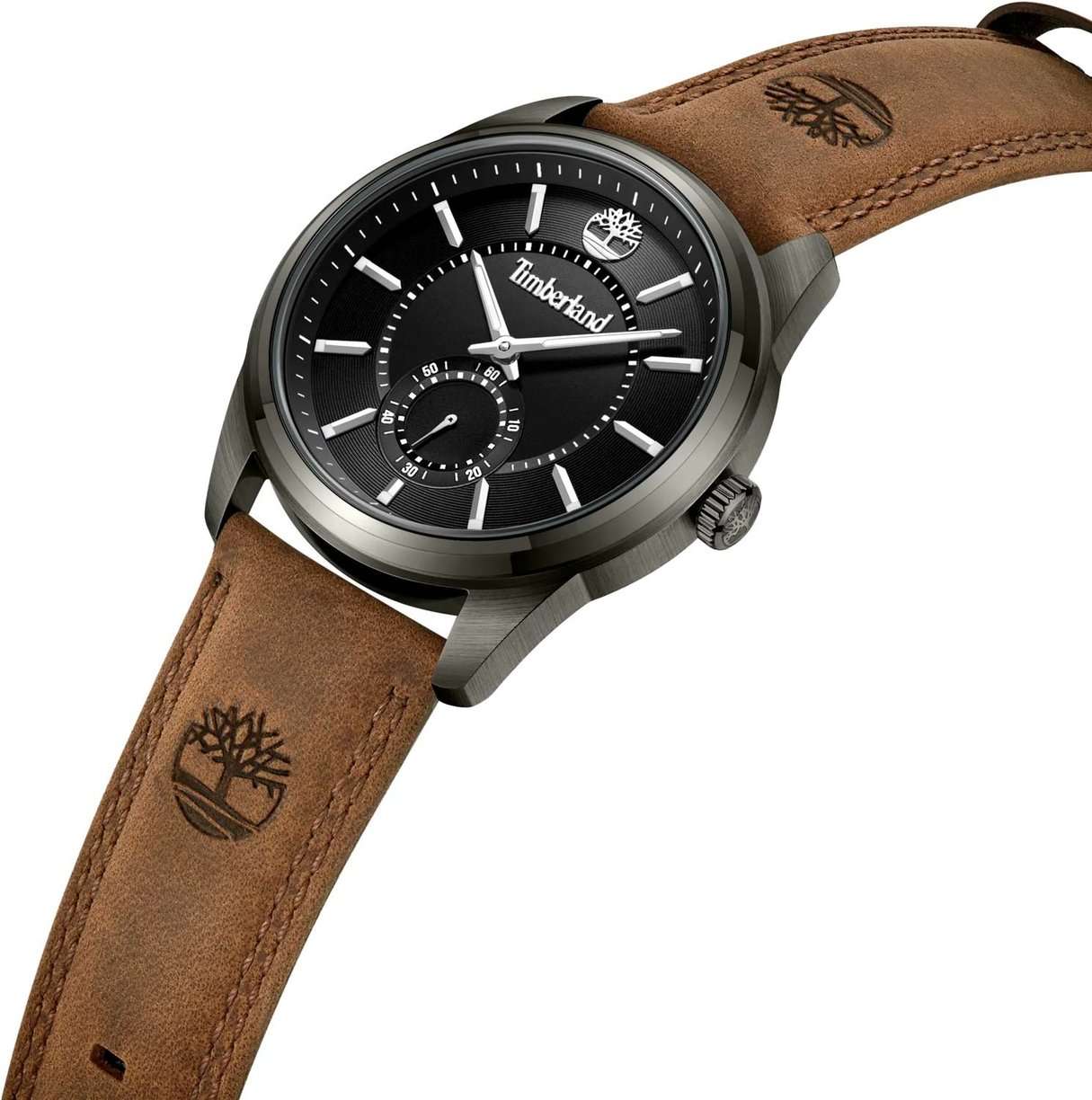 Мужские наручные часы Timberland Northbridge TDWGA0029703 — это стильный и практичный аксессуар для повседневного использования. Оснащенные кварцевым механизмом, они обеспечивают высокую точность времени. Круглый корпус из нержавеющей стали с PVDPVDУльтратонкое покрытие наносится в технике вакуумного напыления, сочетает в себе нитрид титана особой прочности со слоем золота или оксида хрома. Несёт в себе декоративную или защитную функцию. покрытием придает часам современный и надежный облик. Черный циферблат украшен метками в виде штрихов, а секундная стрелка вынесена на отдельный циферблат, что добавляет функциональности и оригинальности дизайну. Рифленая заводная головка с узнаваемым логотипом бренда подчеркивает уникальность модели. Кожаный коричневый ремешок с классической застежкой обеспечивает комфортное ношение и элегантно дополняет общий стиль часов. Минеральное стеклоМинеральное стеклоМинеральное стекло представляет собой искусственно выращенный минерал кварца. Такое стекло отличается особой устойчивостью к повреждениям и царапинам. Уступает по некоторым качествам сапфировому стеклу. защищает циферблат, гарантируя долговечность и стойкость к царапинам. Люминесцентное покрытиеЛюминесцентное покрытиеПозволяет считывать показания времени в темноте. Производители наносят на стрелки, часовые индексы, безель или поверхность циферблата светонакопительный состав, дающий холодное свечение. на стрелках и метках обеспечивает отличную видимость в темноте, а окошко даты с днем недели, расположенное в позиции 3 часа, добавляет практичности. Водозащита 50WR позволяет не беспокоиться о случайных брызгах, делая эти часы отличным выбором на каждый день.