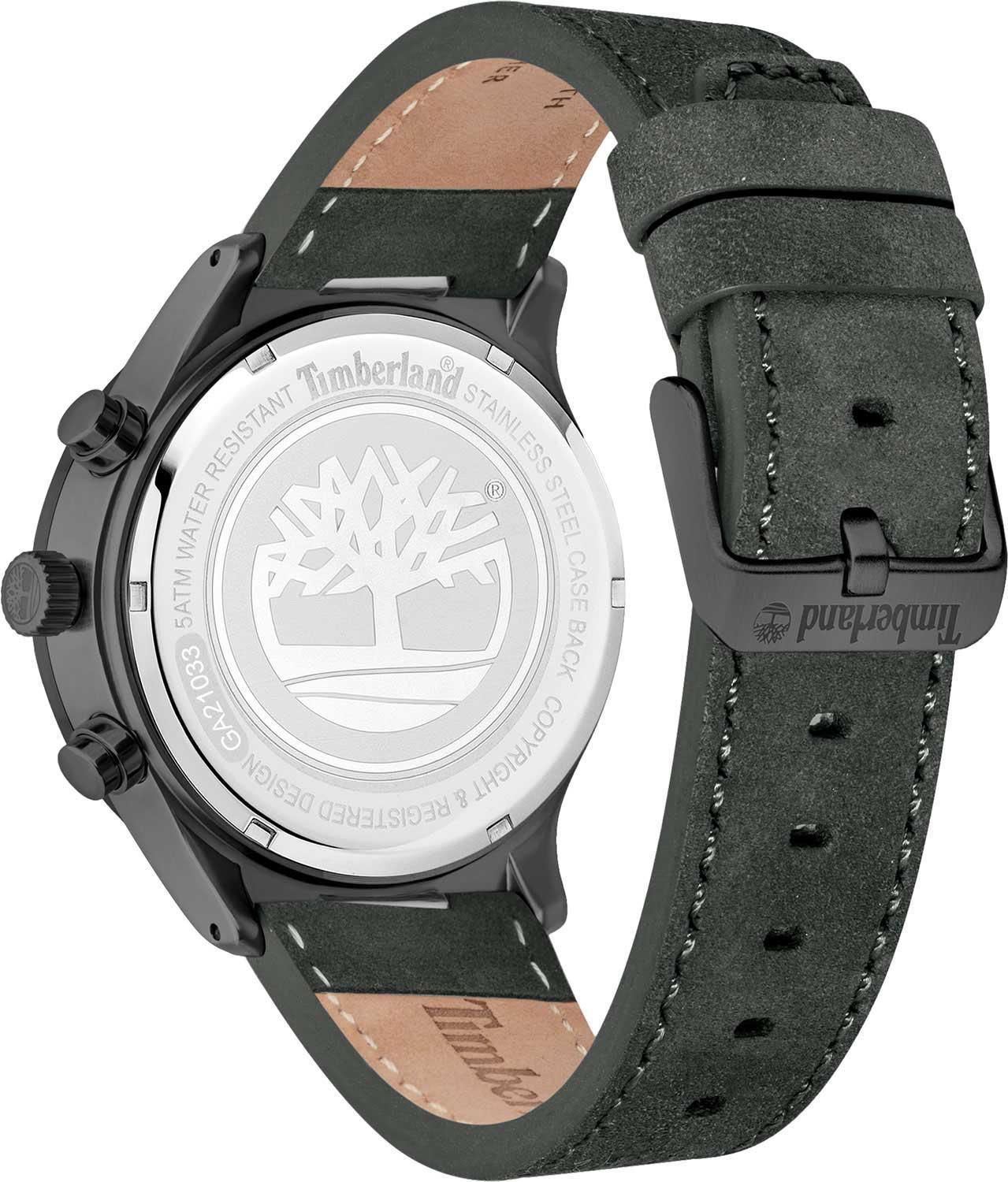 Американские мужские часы Timberland Sullivan TDWGA2103303 имеют кварцевый механизм с высокой точностью. Класс водозащиты: 50 метров, позволит защитить корпус от случайных брызг или капель дождя. Корпус часов изготовлен из стали. Прочное минеральное стеклоМинеральное стеклоМинеральное стекло представляет собой искусственно выращенный минерал кварца. Такое стекло отличается особой устойчивостью к повреждениям и царапинам. Уступает по некоторым качествам сапфировому стеклу.. Циферблат украшен логотипом бренда. Стрелки и метки c люминесцентным покрытиемЛюминесцентное покрытиеПозволяет считывать показания времени в темноте. Производители наносят на стрелки, часовые индексы, безель или поверхность циферблата светонакопительный состав, дающий холодное свечение.. Верхняя кнопка активирует подсветку циферблата, нижняя активирует фонарик. Рифленая заводная головка. Кожаный ремешок с классической застежкой.