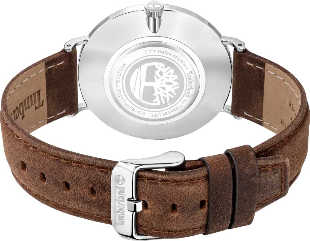 Американские мужские часы Timberland TDWGB2231106 имеют кварцевый механизм с высокой точностью. Класс водозащиты: 50 метров, позволит защитить корпус от случайных брызг или капель дождя. Корпус часов изготовлен из стали. Прочное минеральное стеклоМинеральное стеклоМинеральное стекло представляет собой искусственно выращенный минерал кварца. Такое стекло отличается особой устойчивостью к повреждениям и царапинам. Уступает по некоторым качествам сапфировому стеклу.. Стрелки c люминесцентным покрытиемЛюминесцентное покрытиеПозволяет считывать показания времени в темноте. Производители наносят на стрелки, часовые индексы, безель или поверхность циферблата светонакопительный состав, дающий холодное свечение.. Кожаный ремешок с классической застежкой и системой быстрой замены.