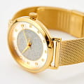 Наручные часы Timex TW2U67100 — изысканный аксессуар, вдохновленный звездами ночного неба, который подчеркнет вашу элегантность и стиль. Эти часы произведены в США и оснащены надежным кварцевым механизмом, что гарантирует их точность и долговечность. Корпус часов выполнен из нержавеющей стали с износостойким PVDPVDУльтратонкое покрытие наносится в технике вакуумного напыления, сочетает в себе нитрид титана особой прочности со слоем золота или оксида хрома. Несёт в себе декоративную или защитную функцию. покрытием, придающим им благородный вид. Серебристый циферблат украшен изящными кристаллами, создающими эффект звездного неба, а метки в виде точек добавляют часам утонченности. Рифленая заводная головка облегчает настройку времени. Часы оснащены прочным минеральным стекломМинеральное стеклоМинеральное стекло представляет собой искусственно выращенный минерал кварца. Такое стекло отличается особой устойчивостью к повреждениям и царапинам. Уступает по некоторым качествам сапфировому стеклу., устойчивым к царапинам, и водозащитой 50WR, что защищает их от случайных контактов с водой. Диаметр корпуса составляет 38 мм, а ширина браслета — 18 мм, что обеспечивает удобную посадку на запястье. Стальной браслет миланского плетения с PVDPVDУльтратонкое покрытие наносится в технике вакуумного напыления, сочетает в себе нитрид титана особой прочности со слоем золота или оксида хрома. Несёт в себе декоративную или защитную функцию. покрытием и раскладным замкомРаскладной замокДанный вариант застежки используется только на часах с металлическим браслетом. Отличительная особенность такого крепления в том, что длина браслета становится универсальной и вы можете самостоятельно отрегулировать нужный вам размер – застежка просто двигается по браслету часов. добавляет модели утонченности и комфорта. Этот аксессуар станет изысканным дополнением вашего образа, привнося в него нотку роскоши и элегантности.