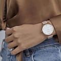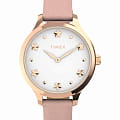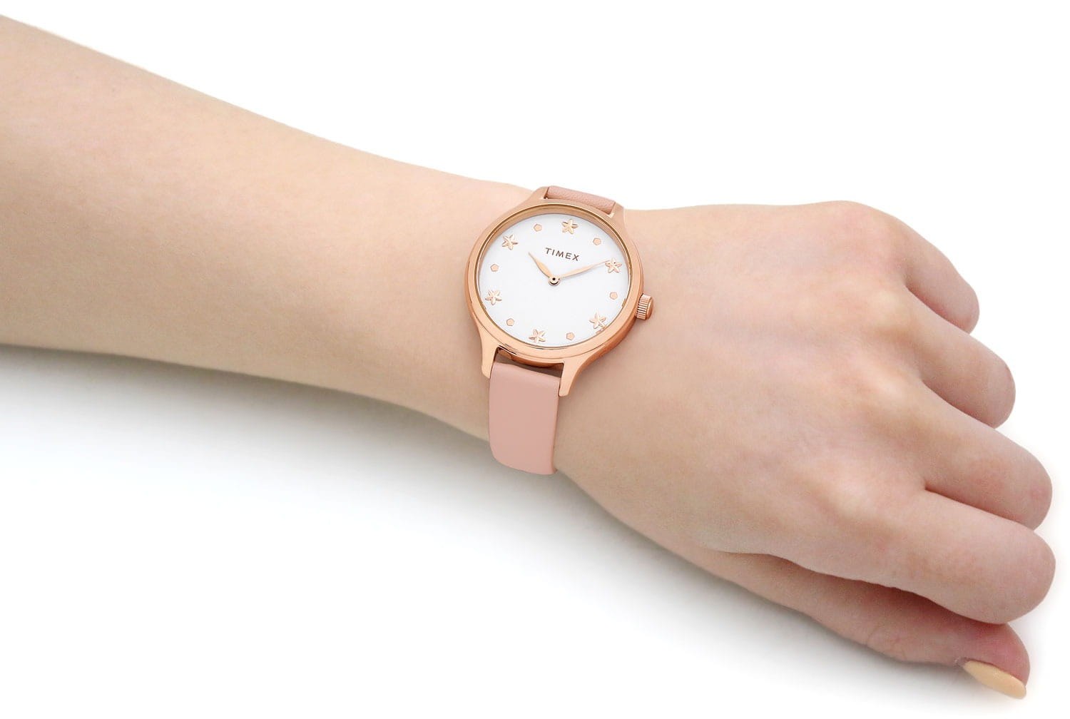 Изысканные часы Timex TW2V23700 станут прекрасным дополнением вашего образа и подчеркнут вашу индивидуальность. Эти часы, разработанные в США, сочетают в себе элегантность и современные технологии. Корпус часов выполнен из латуни с розовым PVDPVDУльтратонкое покрытие наносится в технике вакуумного напыления, сочетает в себе нитрид титана особой прочности со слоем золота или оксида хрома. Несёт в себе декоративную или защитную функцию. покрытием, что придаёт им утончённый и стильный вид. Белый циферблат сдержанного дизайна украшен метками в виде точек и цветков, что добавляет часам особого шарма. Листовидные стрелки в стиле Feuille подчёркивают изящество дизайна, а отсутствие секундной стрелки делает облик часов ещё более минималистичным. Часы оснащены надёжным кварцевым механизмом, который обеспечивает точный ход и долговечность. Минеральное стеклоМинеральное стеклоМинеральное стекло представляет собой искусственно выращенный минерал кварца. Такое стекло отличается особой устойчивостью к повреждениям и царапинам. Уступает по некоторым качествам сапфировому стеклу. защищает циферблат от царапин и повреждений, сохраняя его первозданный вид на протяжении долгого времени. Рифлёная заводная головка добавляет удобства в использовании. Водозащита 30WR позволяет не беспокоиться о случайных брызгах воды, делая эти часы подходящими для повседневного ношения. Удобный кожаный ремешок с классической застежкой обеспечивает комфорт и надёжность, прекрасно дополняя общий дизайн часов. С диаметром корпуса 36 мм и шириной ремешка 14 мм, эти часы идеально подходят для изящного запястья, становясь акцентом любого наряда. Эти часы — отличный выбор для тех, кто ищет стильный и функциональный аксессуар.