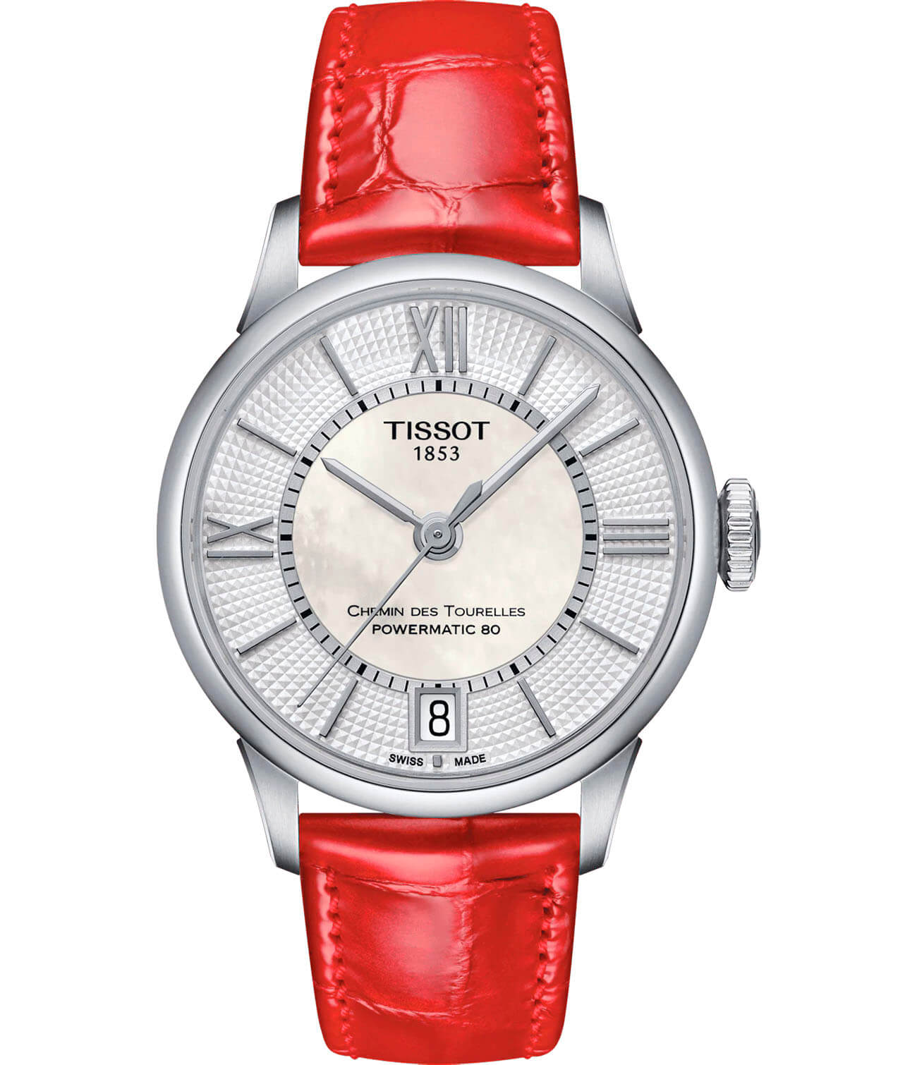 Женские швейцарские часы из коллекции Chemin Des Tourelles с кожаным ремешком ярко-красного цвета позволят добавить в образ немного антуража и озорства.
