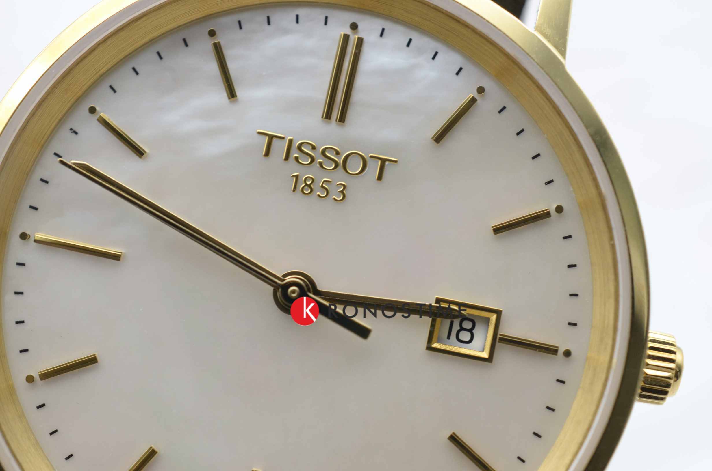 , атрибут богатства и роскоши. Высокая точность хода обеспечивается благодаря работе кварцевого механизма ETA E61.111. Сапфировое стекло устойчиво к царапинам. Чёрный ремешок из натуральной кожи. Перламутровый циферблат. Индикатор EOLEOLПредставляет собой систему, уведомляющую владельца часов о необходимости замены элемента питания. За 2 недели до полного разряда батарейки секундная стрелка перестаёт ходить чётко и начинает перепрыгивать на 3-4 деления.. Отображение числа. Габариты: 29 x 29 x 4,9 мм.