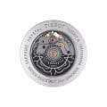 Лаконичный циферблат дополнен перламутровой вставкой, где расположились серебристые цифры и индексы. Уникальность аксессуара заключается в цветочке, сквозь него можно просматривать движение частиц механизма. В комплектацию часов входит автоматический швейцарский калибр ETA Powermatic 80Powermatic 80Эксклюзивный калибр от швейцарской компании ETA с увеличенным запасом хода до 80 часов за счёт удлинённой заводной пружины. Характеризуется улучшенной системой спуска со сниженным трением., сохраняющий запас хода 80 часов. Надёжное стекло из сапфира. Скелетонизированная задняя крышка. Кожаный ремешок с безопасной . Габариты: 35 x 35 x 9,35 мм.